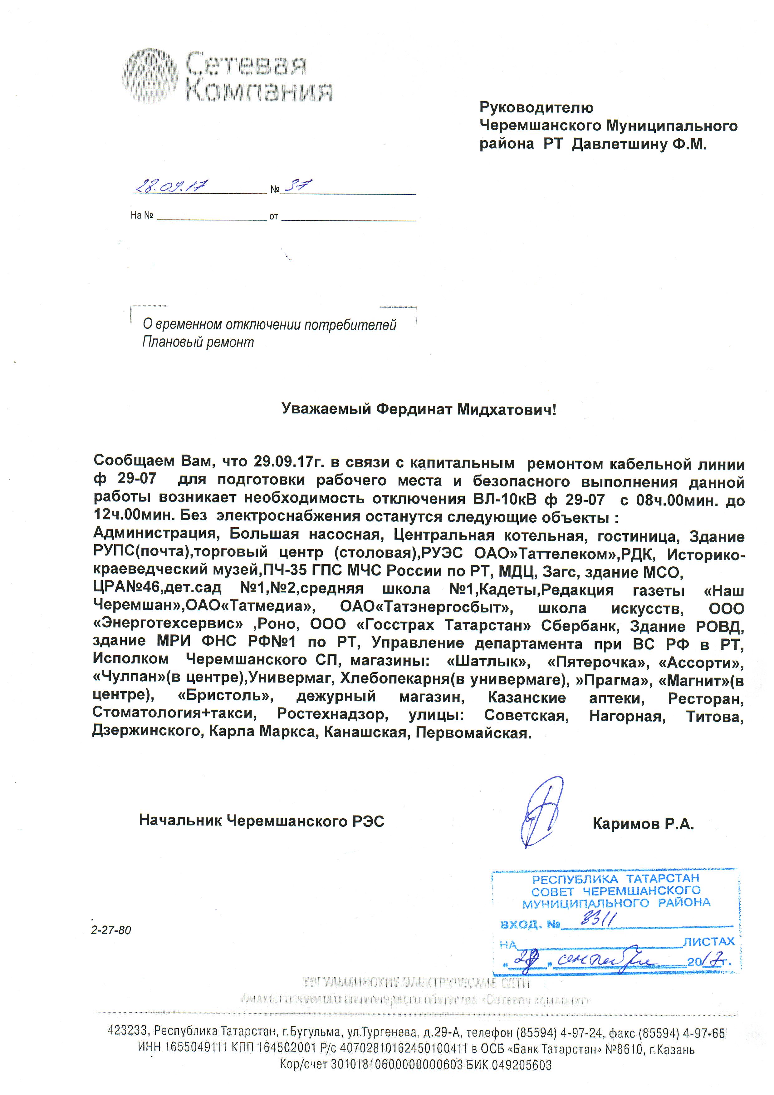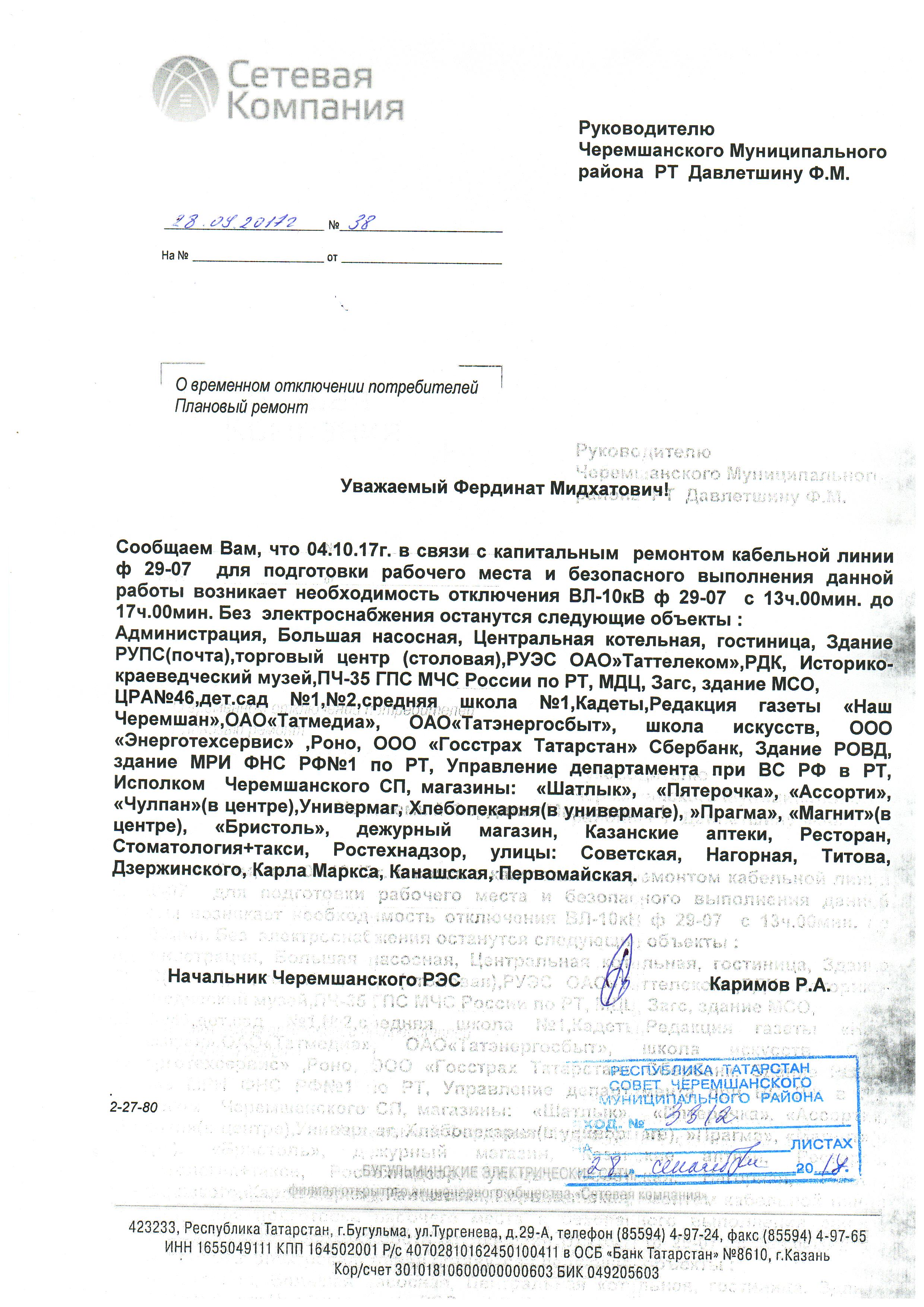 О временном отключении потребителей от электроснабжения