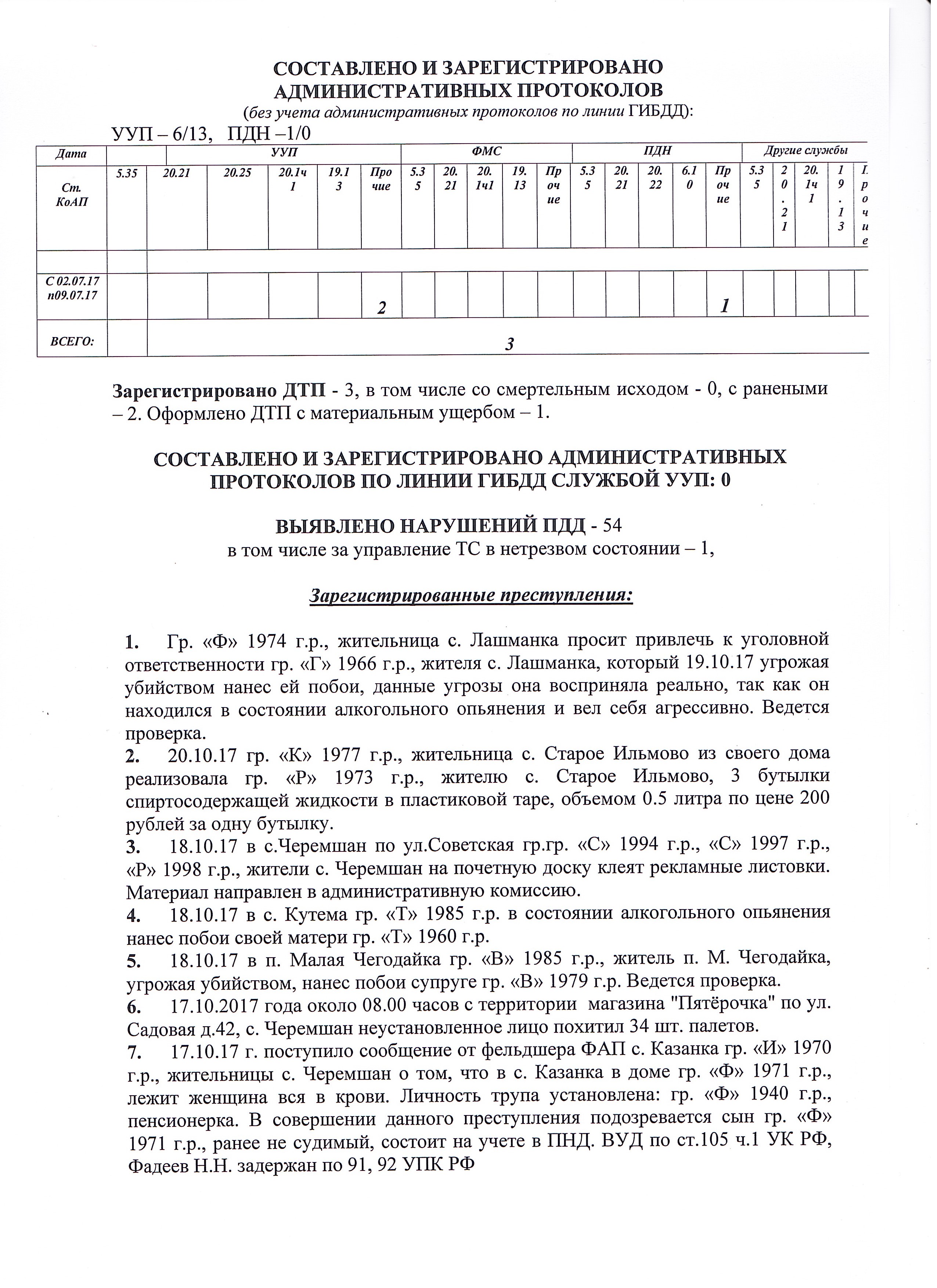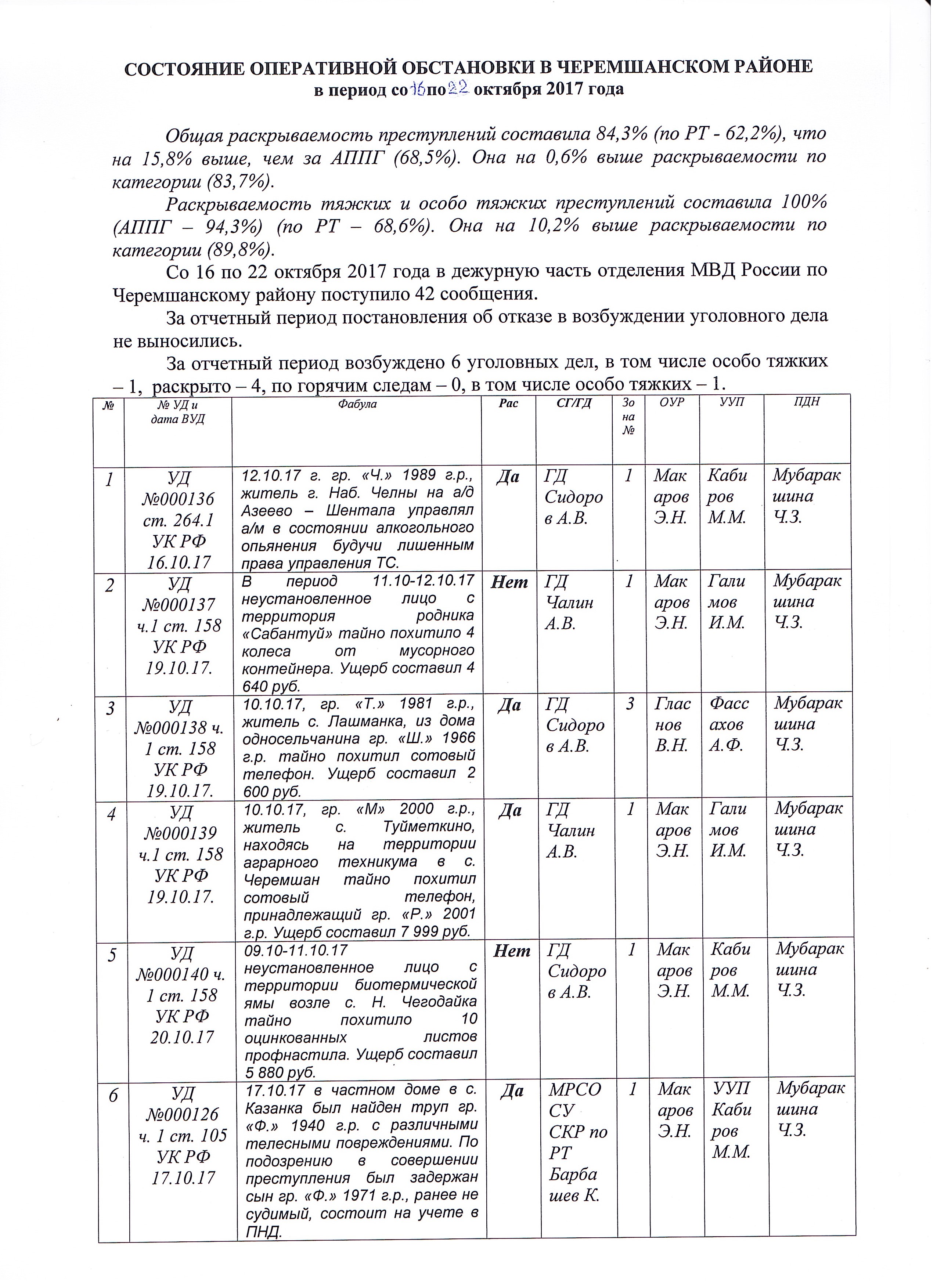 СОСТОЯНИЕ ОПЕРАТИВНОЙ ОБСТАНОВКИ В ЧЕРЕМШАНСКОМ РАЙОНЕ в период со 16 по 22 октября 2017 года