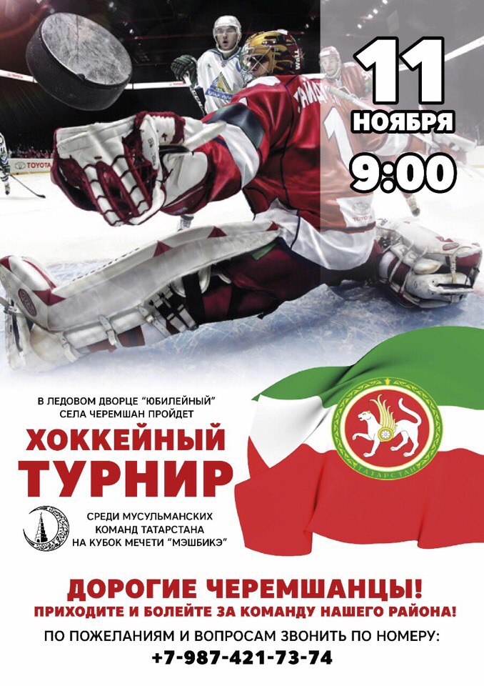 11 ноября 2017 года в Черемшане пройдет хоккейный турнир среди мусульманских команд Татарстана на кубок мечети «Мэшбикэ».