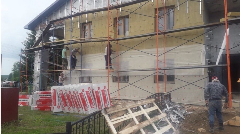Строители выполнили подготовительные работы, провели ремонт стропильных конструкций, демонтаж полов и потолков, ремонт крыши. Начали работы по монтажу полов, замене электрических сетей, подготовительные работы по утепрлению и обшивке здания.