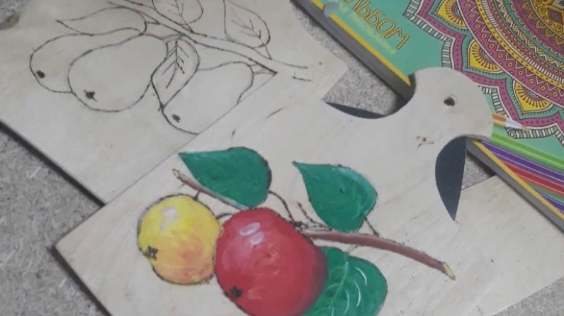 Кружковцы с любовью рисовали на разделочных досках, выжигали и красили их. Остаются последние штрихи. Поделки изготовленные своими руками будет дорогим подарком для близких.