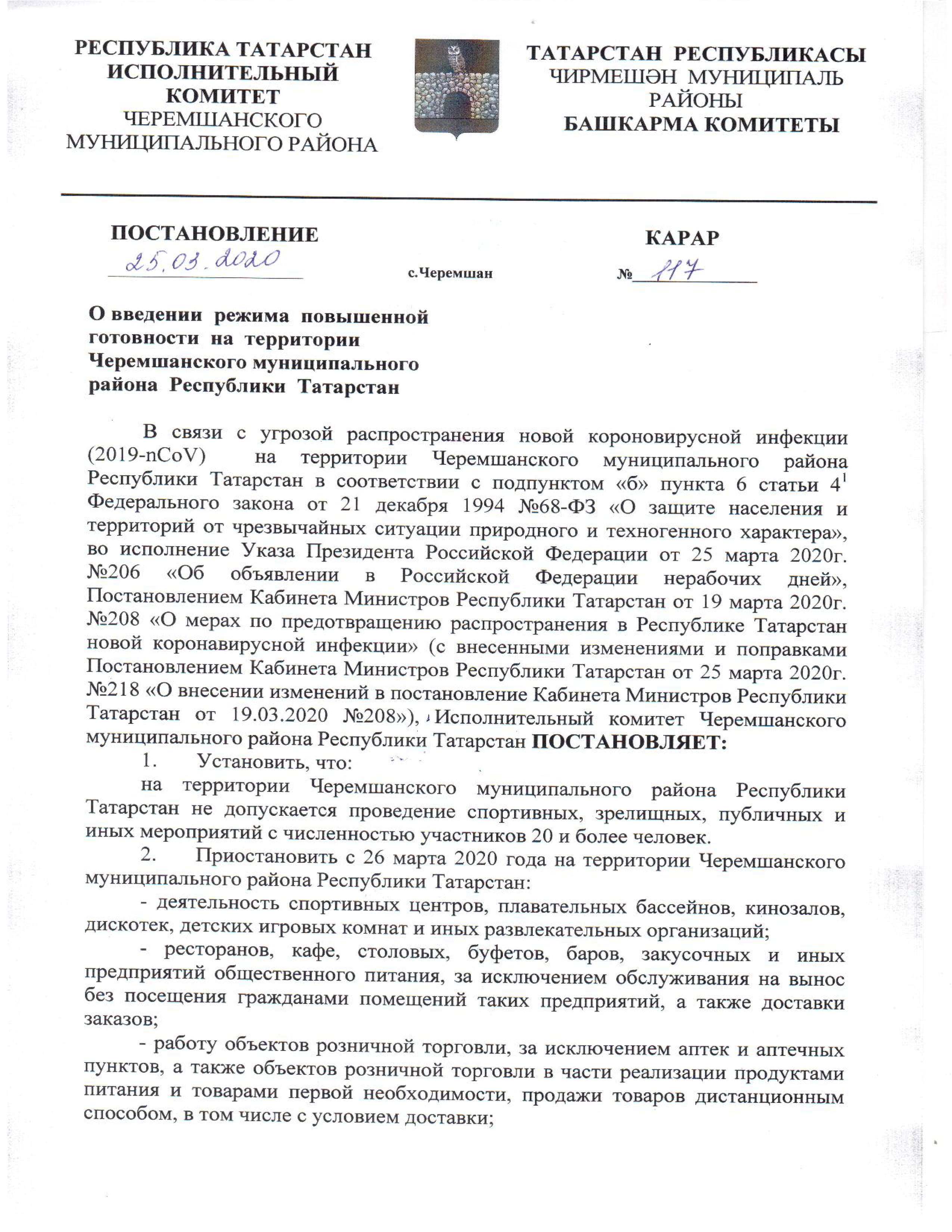 Постановления Главы Черемшанского муниципального района на Правовом портале РТ