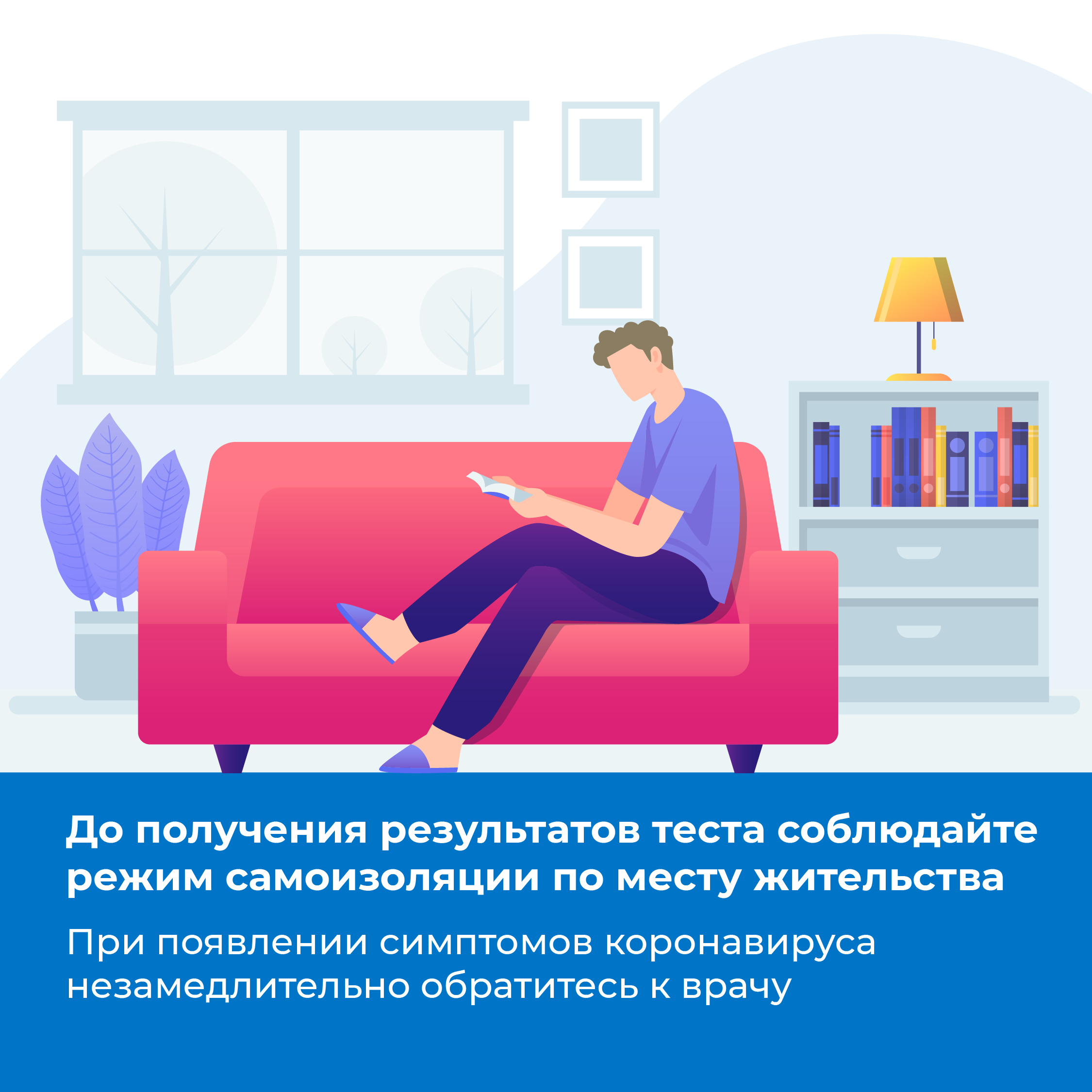 До получения результатов лабораторного исследования на COVID-19 методом ПЦР соблюдать режим изоляции по месту жительства (пребывания).