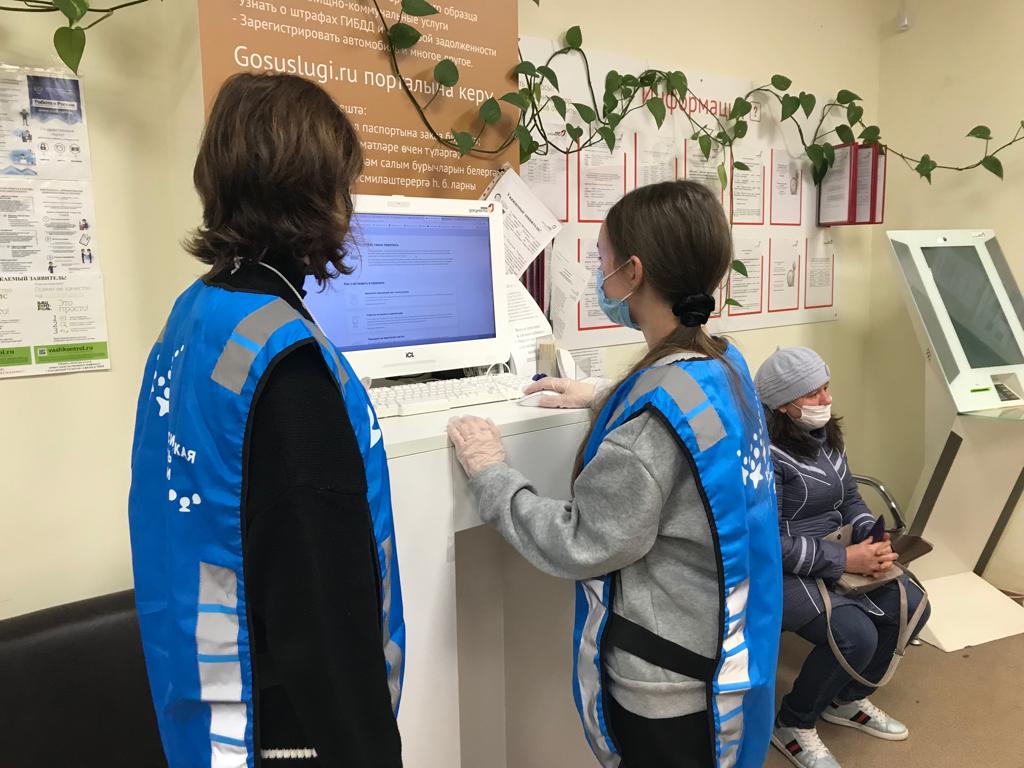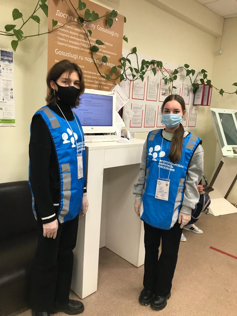 Волонтеры – это добровольные помощники Всероссийской переписи населения. Волонтеры не являются переписным персоналом, перепись они не проводят. Их задача – помочь людям, не владеющим компьютерной техникой переписаться самостоятельно на «гостевых» компьютерах, которые установлены на стационарном переписном участке в МФЦ. Добровольцы консультируют респондентов о трех способах прохождения переписи, в том числе о возможности пройти ее в онлайн, отвечают на общие вопросы, а также консультируют тех, кому нужна помощь.