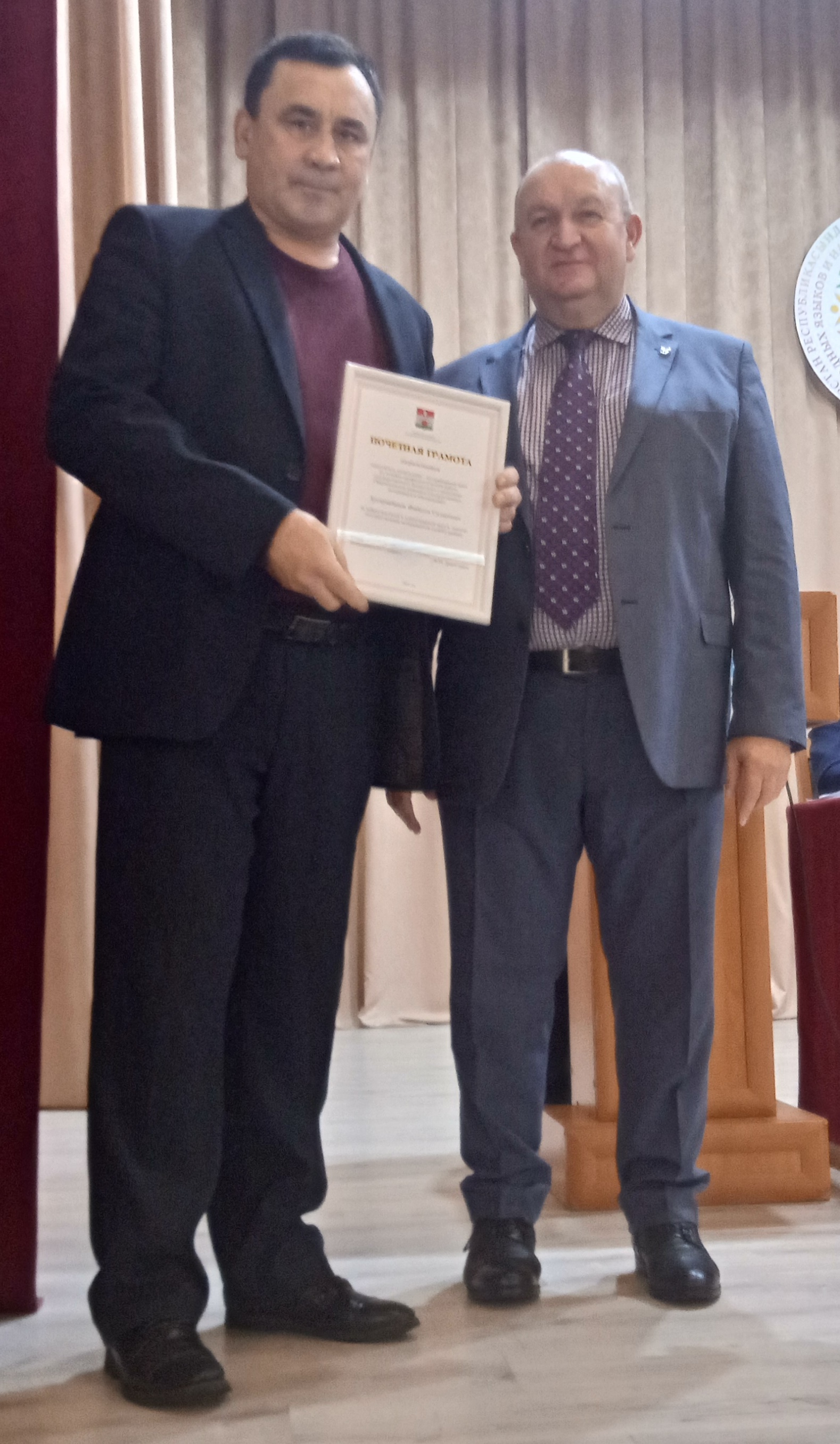 За многолетний добросовестный труд и вклад в патриотическое воспитание молодежи Памятным знаком «100 лет образования Татарской Автономной Советской Социалистической Республики» награждается Палаткин Дмитрий Иванович.
