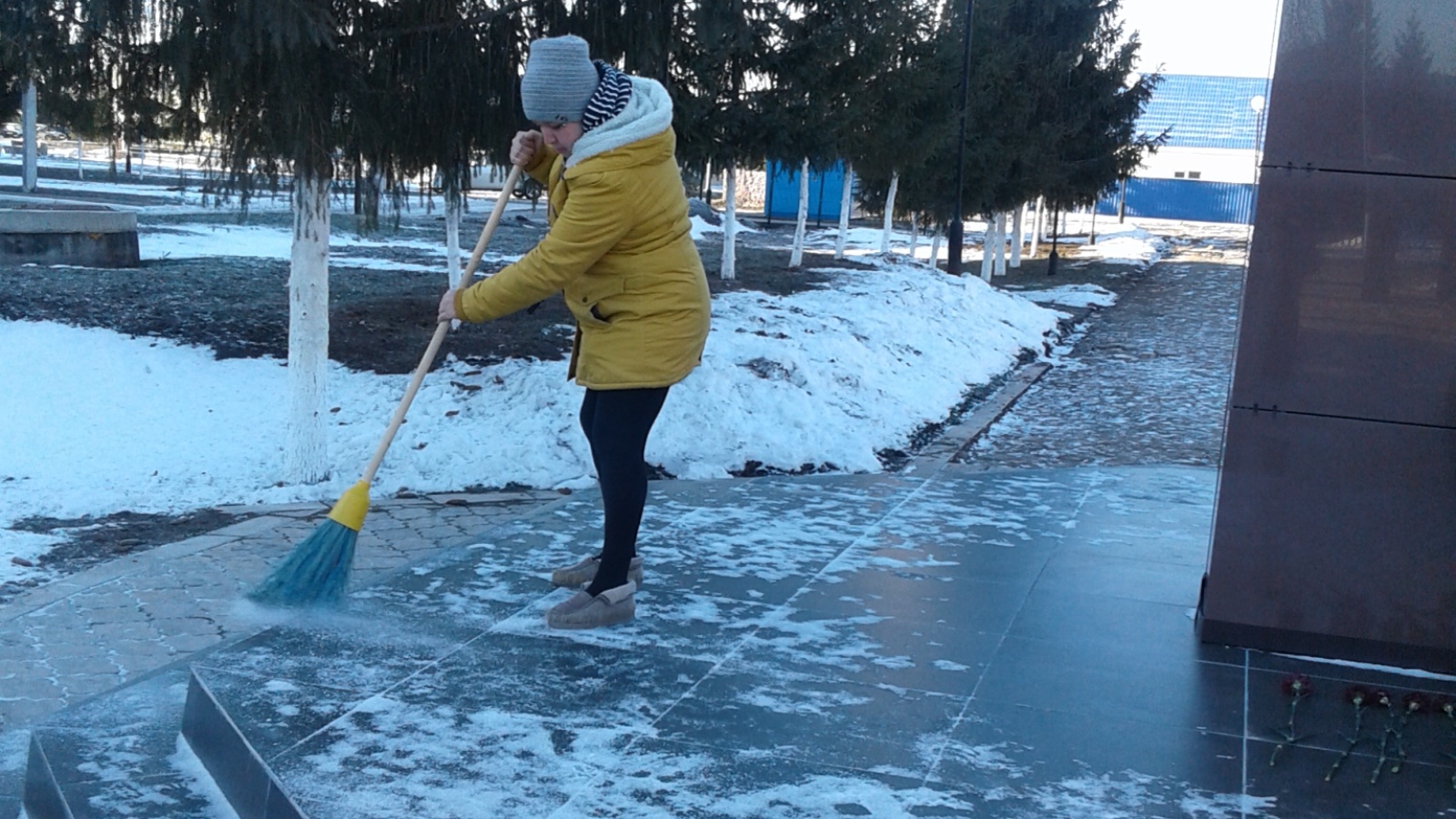 Сотрудниками Мемориального центра была проведена уборка территории Аллеи Героев от снега.