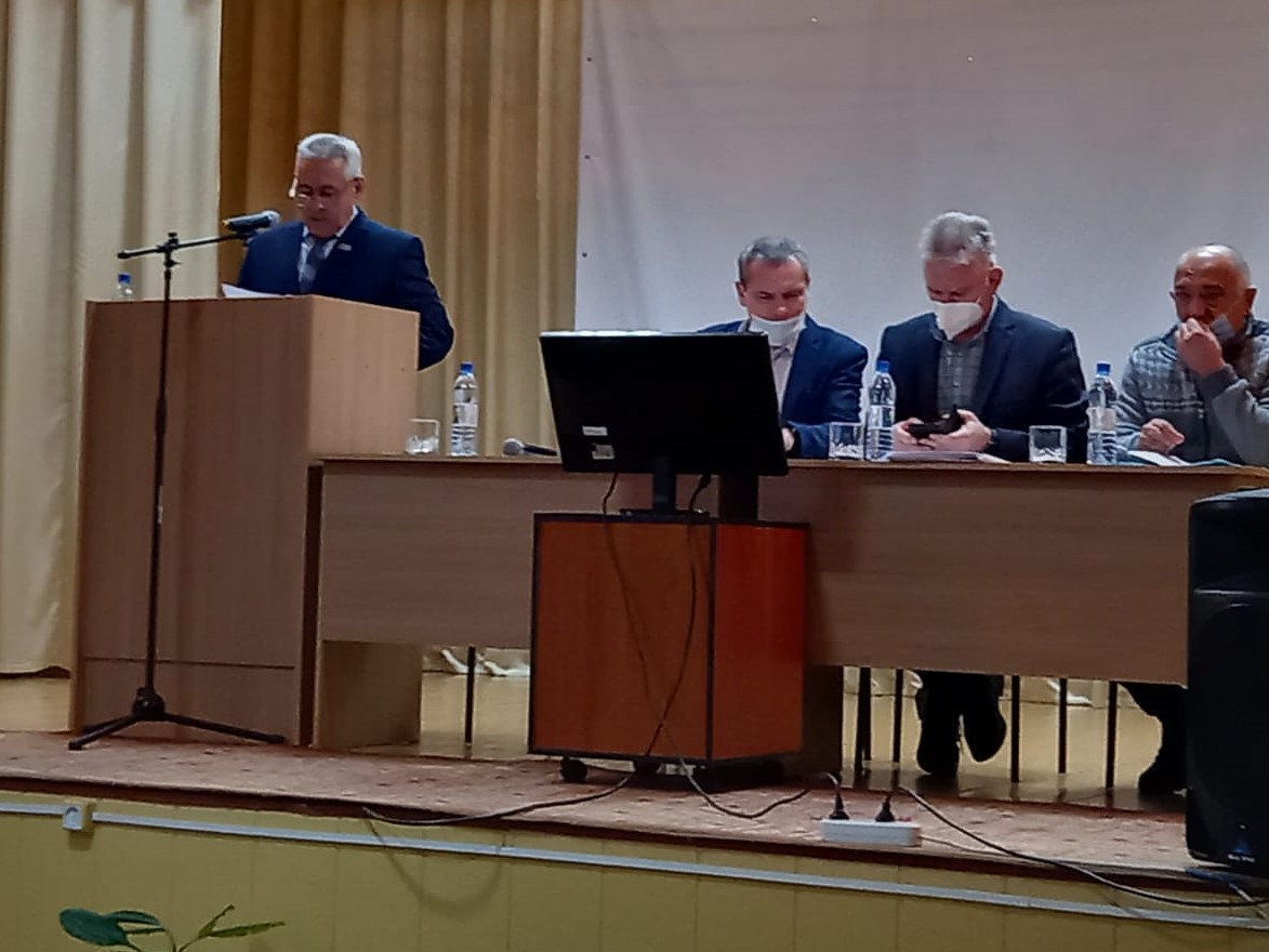 Гатин Мирзагит Закирович, начальник Черемшанского УСХиП, в своем выступлении он проинформировал присутствующих на сходе с итогами уборочной работы 2021 года на полях Черемшанского муниципального района. Также он ознакомил кратко с посевными площадями района, конкретно сколько посеяно яровых и озимых культур, с планами посева на 2022 год.