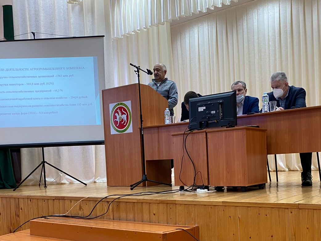 Гатин Мирзагит Закирович – начальник Управления сельского хозяйства и продовольствия Министерства сельского хозяйства и продовольствия Республики Татарстан в Черемшанском муниципальном районе, в своем выступлении зачитал отчет о том, что им удалось сделать в 2021 году и каких результатов достигнуты по результатам сборов урожая. Ознакомил с планами на 2022 год, Рассказал присутствующим о достижениях района в 2021 году. Ознакомил различными программами, о грантах и субсидиях для животноводов. Ответил на вопросы.
