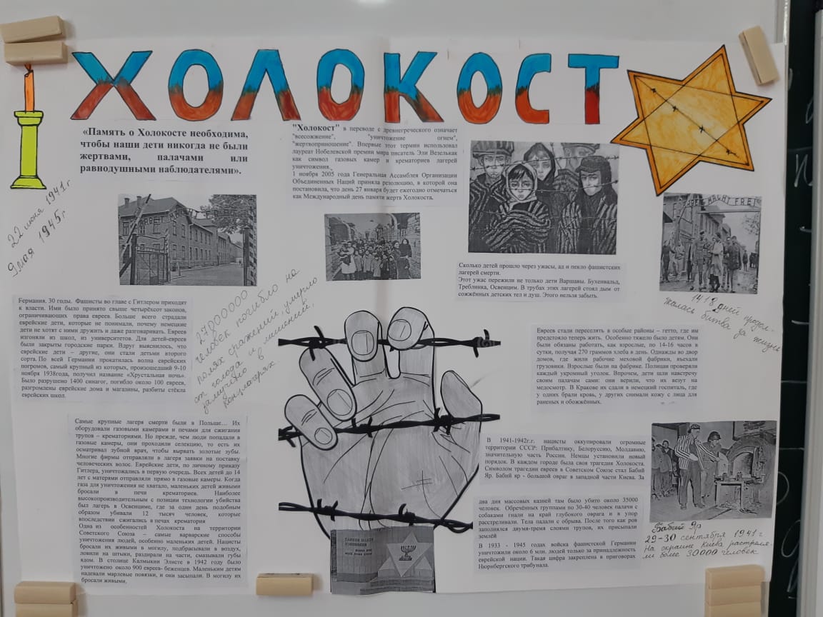 Международный день памяти жертв Холокоста - это международный день памяти 27 января, посвященный памяти жертв Холокоста, геноцида европейских евреев нацистской Германией между 1941 и 1945 гг. 27 января было выбрано в ознаменование даты освобождения концлагеря Освенцим Красной Армией в 1945 году.