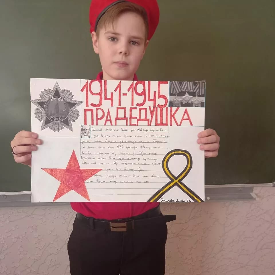 В канун 77-летия Победы в Великой Отечественной войне, участники отряда "Юнармия" МБОУ "Черемшанский лицей" Черемшанского района защитили проекты "Мой прадед на фронте воевал ". Ребята собрали семейные реликвии, нашли семейные фотографии, письма, документы, личные дела своих родственников . В результате проведенной работы собрали информацию о родственниках - участниках ВОВ и их значимость для приближения Победы.