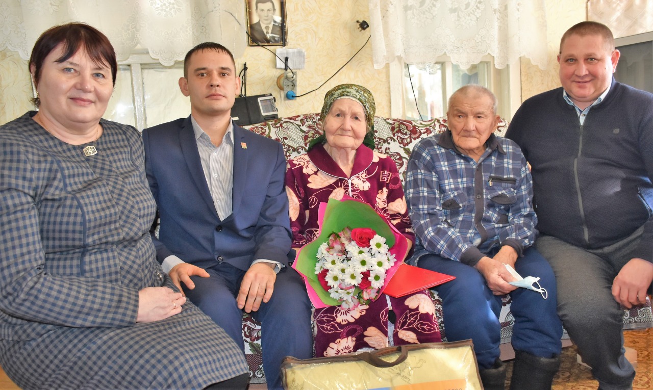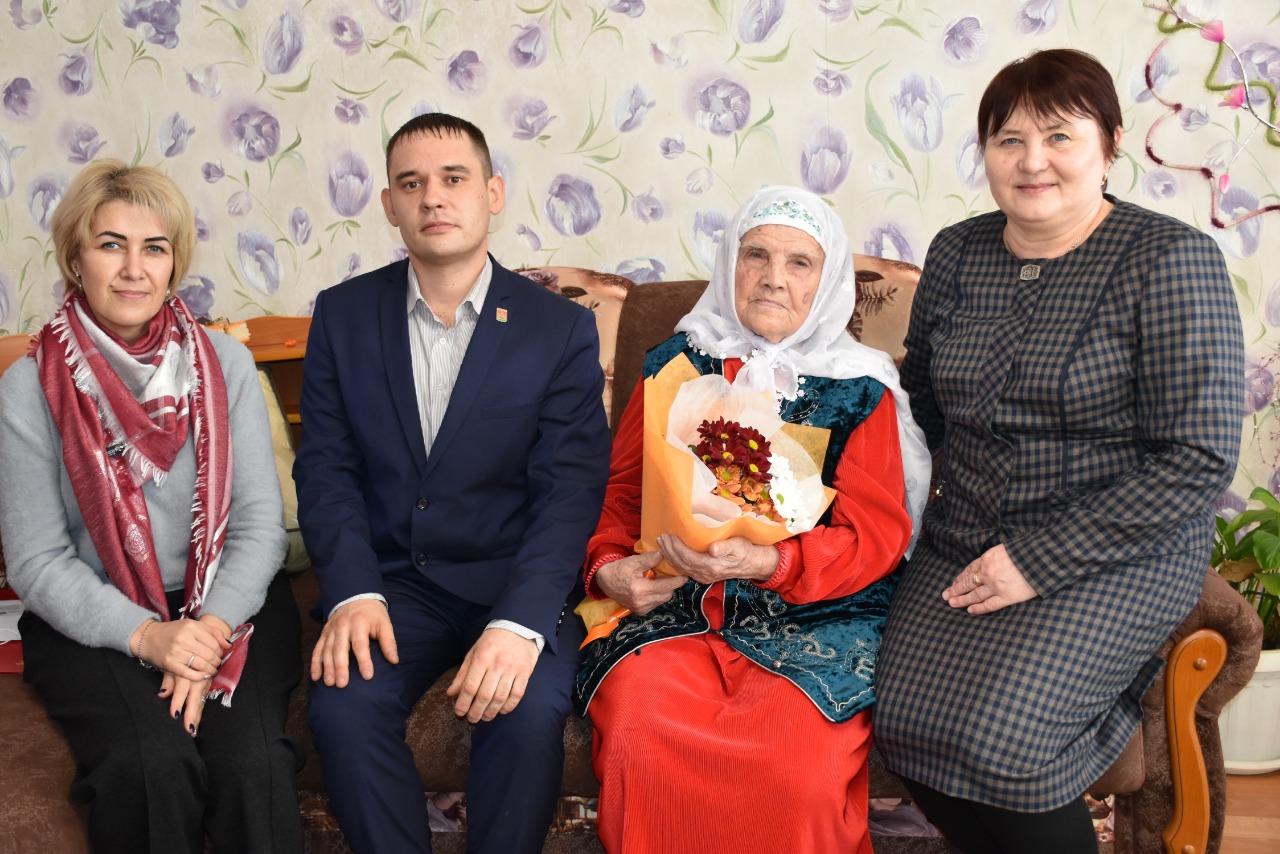 Поздравление от Президента Российской Федерации Владимира Владимировича Путина, а также поздравление и подарок от Главы Черемшанского муниципального района Республики Татарстан Фердината Мидхатовича Давлетшина, именинницам вручили исполняющий обязанности заместителя руководителя Исполнительного комитета Черемшанского муниципального района Республики Татарстан Шамсутдинов Ильгиз Саматович, начальник отдела социальной защиты в Черемшанском районе Ахмадуллина Рушания Султановна.