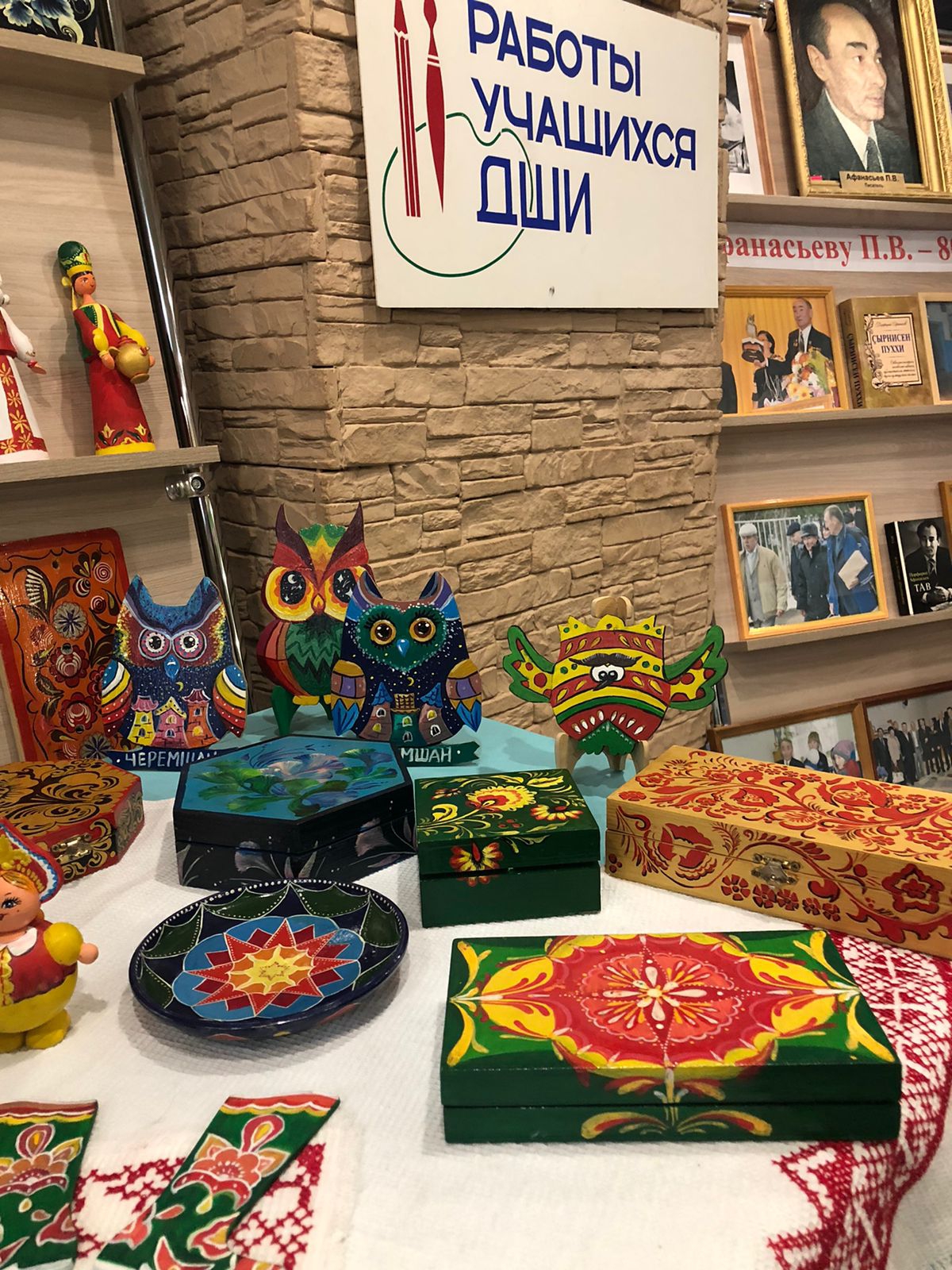 21 февраля Оформлена выставка работ учащихся Детской школы искусств «Орнаменты народного творчества» на районную отчетную сессию в РДК. На выставке представлены изделия декоративно-прикладного искусства и живописные композиции.