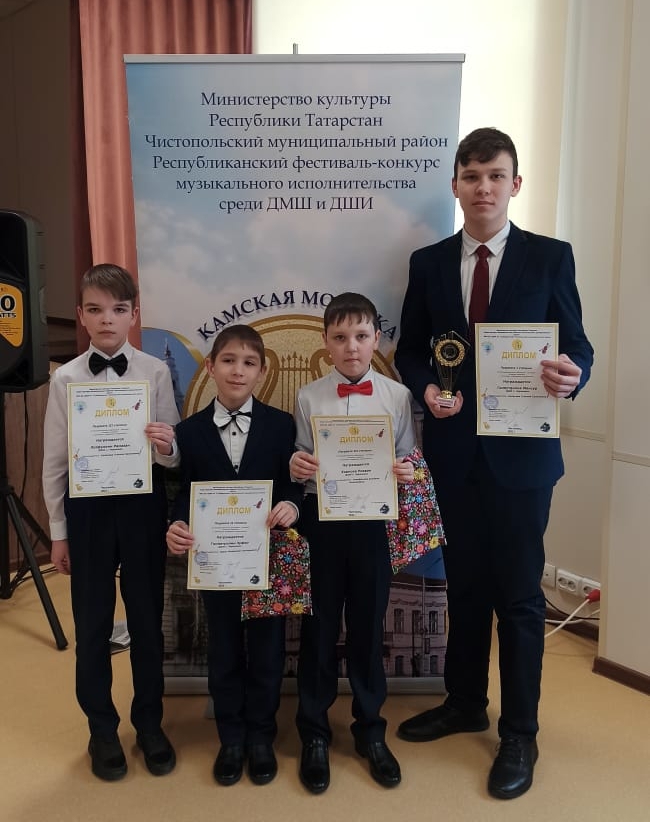 Дипломом лауреата I степени награжден Галяутдинов Мансур, преподаватель Салахова Гузалия Салиховна. Дипломом лауреата II степени награжден Гиниятуллин Зуфар, преподаватель Юрин Владимир Григорьевич. Дипломами лауреата III степени награждены Лотфуллин Рамазан, преподаватель Салахова Гузалия Салиховна и Харисов Ризван, преподаватель Гильфанова Альбина Николаевна. Поздравляем наших учеников и преподавателей с хорошими результатами. Желаем в дальнейшем также достигать больших высот!