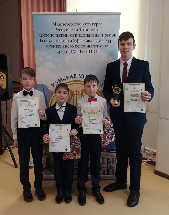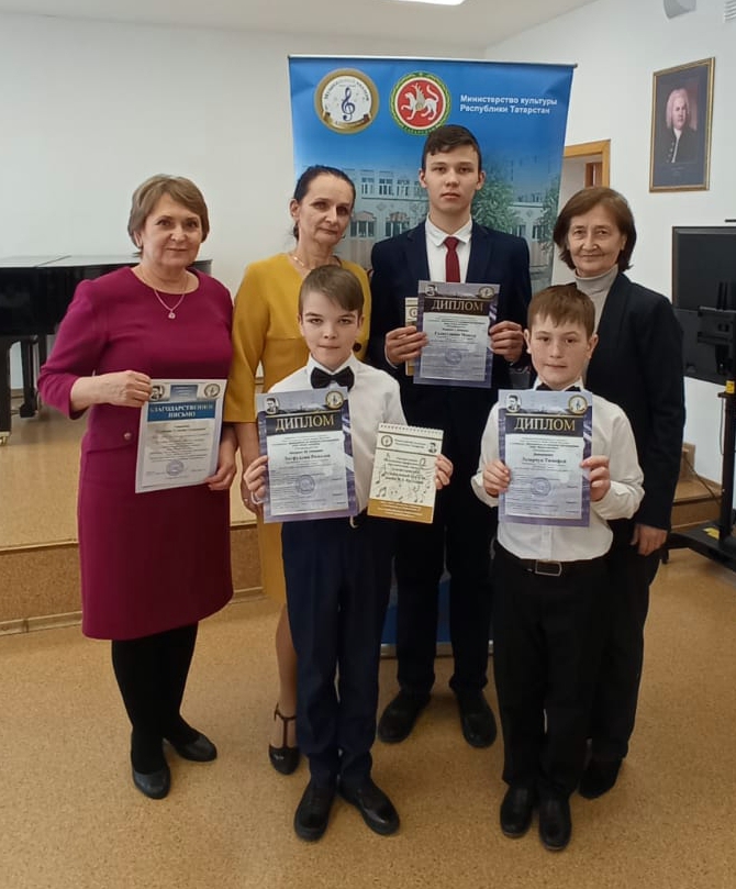 Открытый Республиканский конкурс юных музыкантов имени Фарида Яруллина. Дипломом лауреата I степени награжден Галяутдинов Мансур, Дипломом лауреата III степени награжден Лотфуллин Рамазан, Дипломант Лазарчук Тимофей, преподаватель Салахова Гузалия Салиховна.