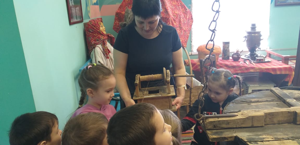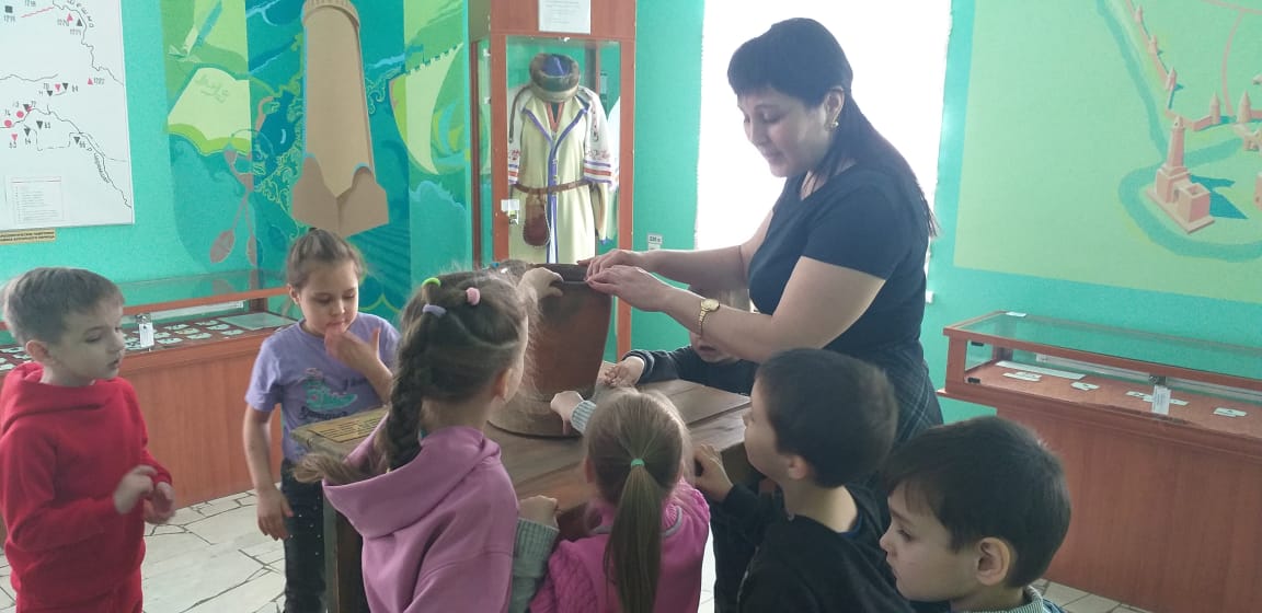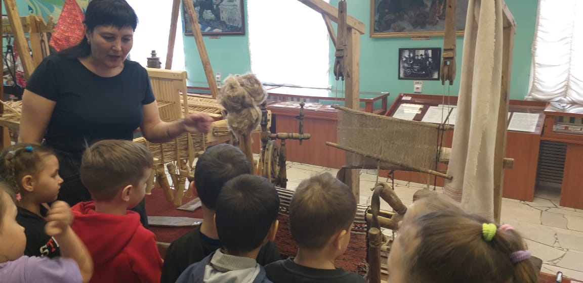 Воспитанники старшей - подготовительной группы МБДОУ детский сад «Ромашка» совершили экскурсию в историко-краеведческий музей, работники провели очень интересную и познавательную экскурсию по залам музея с разными экспозициями, которые помогли понять и увидеть быт наших предков. Девочек заинтересовали утюги, ткацкий станок, коромысло. А мальчиков - старинные инструменты, подковы, серпы. В музеях экспонаты трогать нельзя, но в нашем- подержали утюги, разглядели прялку, увидели, как работали наши предки на ткацком станке и на гончарном круге. Старое уходит, но его нужно знать и беречь. Русская старина вся пронизана добром, а это очень важно в наши дни, и особенно актуально для детей дошкольного возраста.