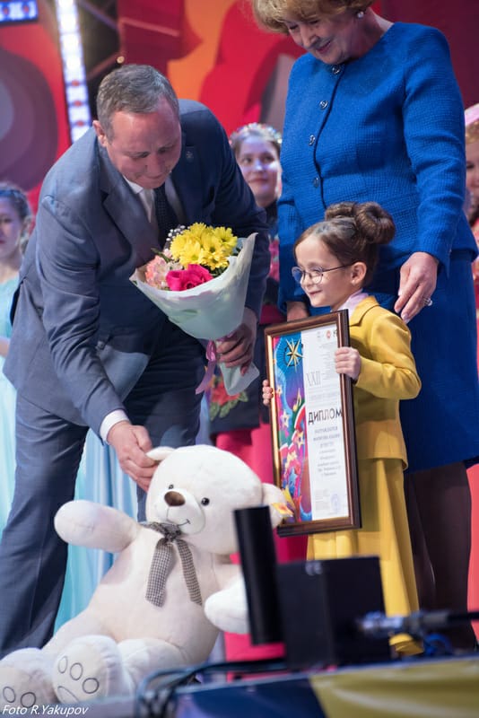 Фарисова Азалия (г. Черемшан) заняла второе почетное место в номинации «Конферанс». Ей вручили диплом, медаль, премию от Правительства РТ, а также подарки.