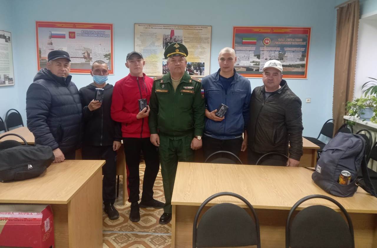 Исполняющий обязанности заместитель руководителя исполнительного комитета по социальным вопросам Самат Хайруллин и руководитель сектора по делам молодежи Мотыгуллин Завдат вручили призывникам сотовые телефоны, разрешенные для использования в армии.