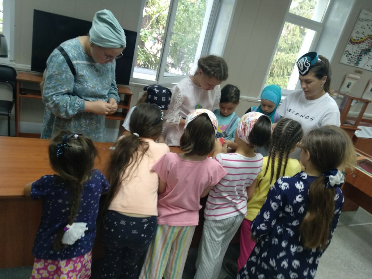 Дети из лагеря при мечети «Мошбике» посетили историко-краеведческий музей. Ребята узнали об истории родного края, ознакомились с орнаментами через традиции и обычаи народов. Дети сами из подручных материалов изготовили мотив татарского орнамента «Тюльпан чэчэге».
