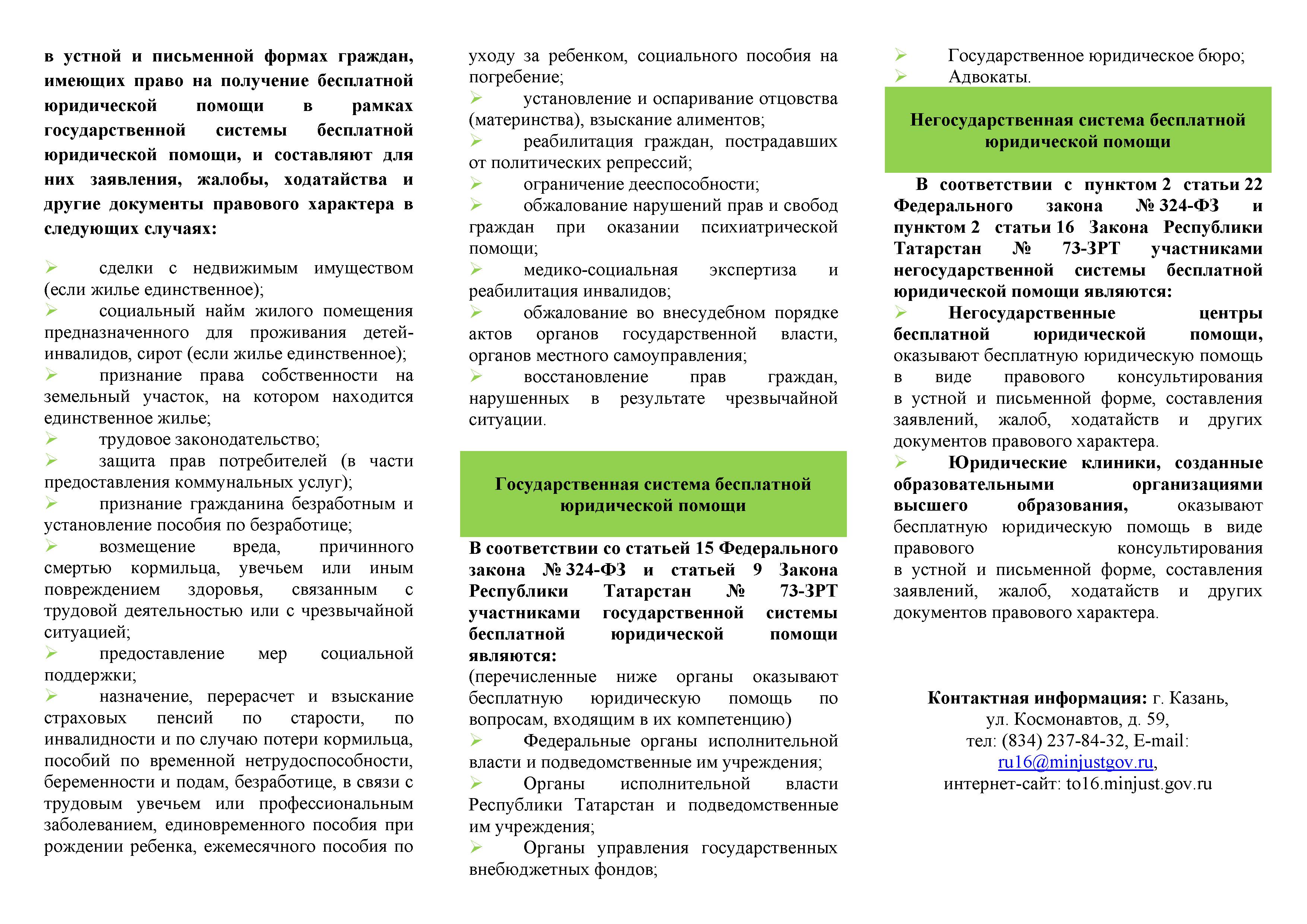 Об оказании бесплатной юридической помощи на территории Республики Татарстан