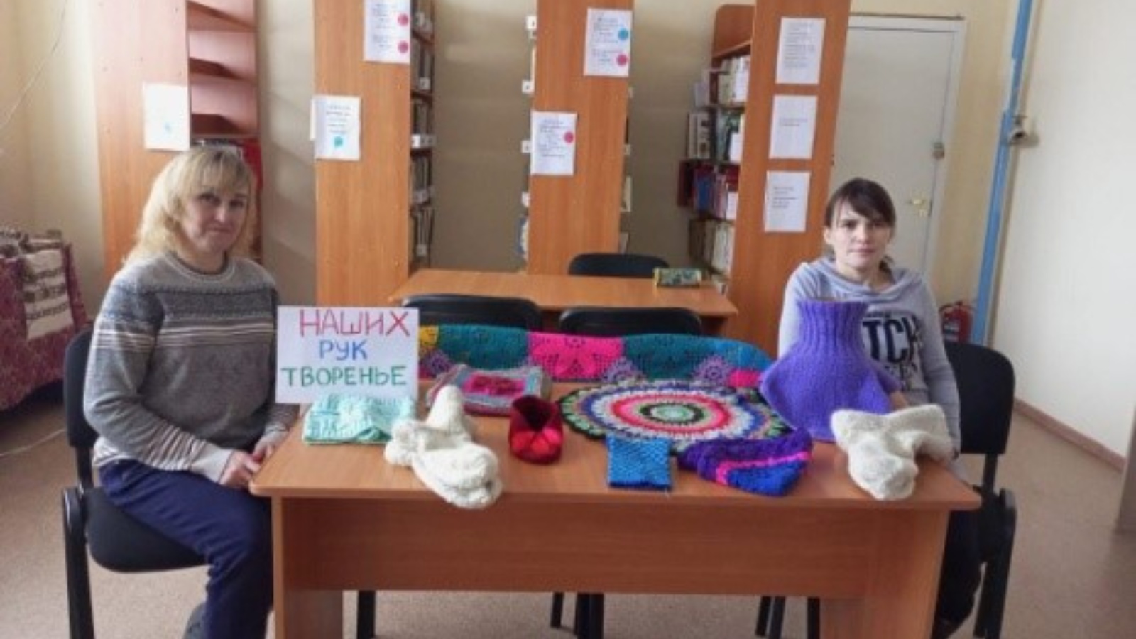 В библиотеке провели беседу-встречу «Наших рук творенье» с инвалидом Константиновой Аленой. Она в свободное время не сидит без дела: вяжет спицами носки, детские шарф-снуды, вяжет крючком накидки для табуретов.