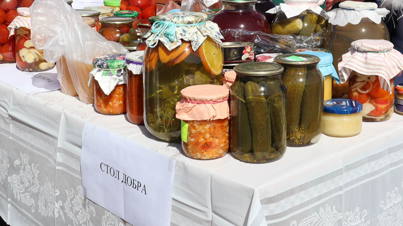 На ярмарке был организован "Стол добра". На нём покупатели могли оставить выкупленный товар, который будет отправлен нашим бойцам в зону СВО.