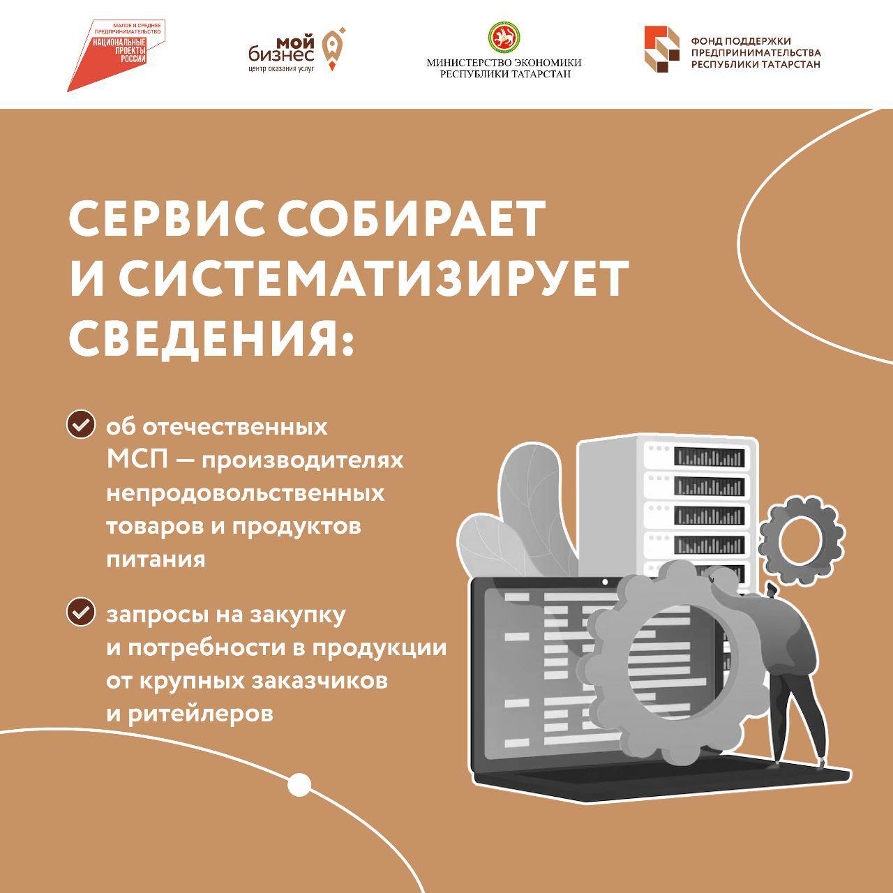 Министерство экономики Республики Татарстан предлагает предпринимателям ознакомиться с новыми инструментами продвижения продукции или поиска необходимых товаров, которые предлагает Федеральная корпорация по развитию малого и среднего предпринимательства (АО «Корпорация «МСП») в рамках мер государственной поддержки российской промышленности.