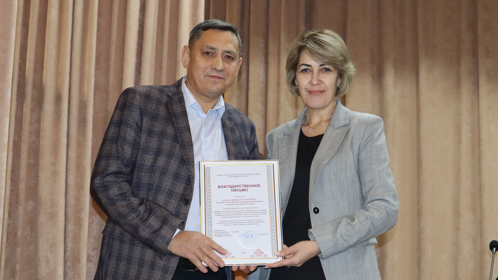 За информационное освещение материалов о деятельности Национально-культурной автономии мордвы в Черемшанском районе Республики Татарстан Благодарственным письмом Национально-культурной автономии мордвы РТ поощрили коллектив филиала акционерного общества «ТАТМЕДИА» - редакции газеты «Безнең Чирмешән-Наш Черемшан».