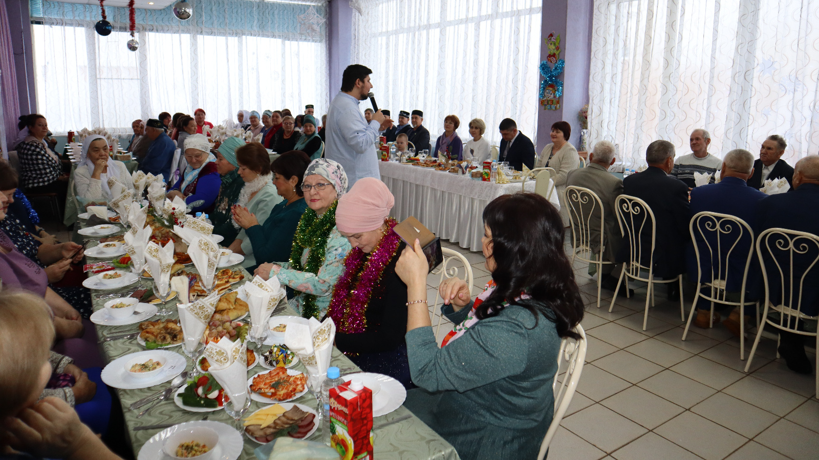 В центральной районной столовой угостили около семидесяти ветеранов, приехавших из разных населенных пунктов. Бабушек и дедушек, украсивших этот праздник стихами и песнями, Дед Мороз порадовал подарками.