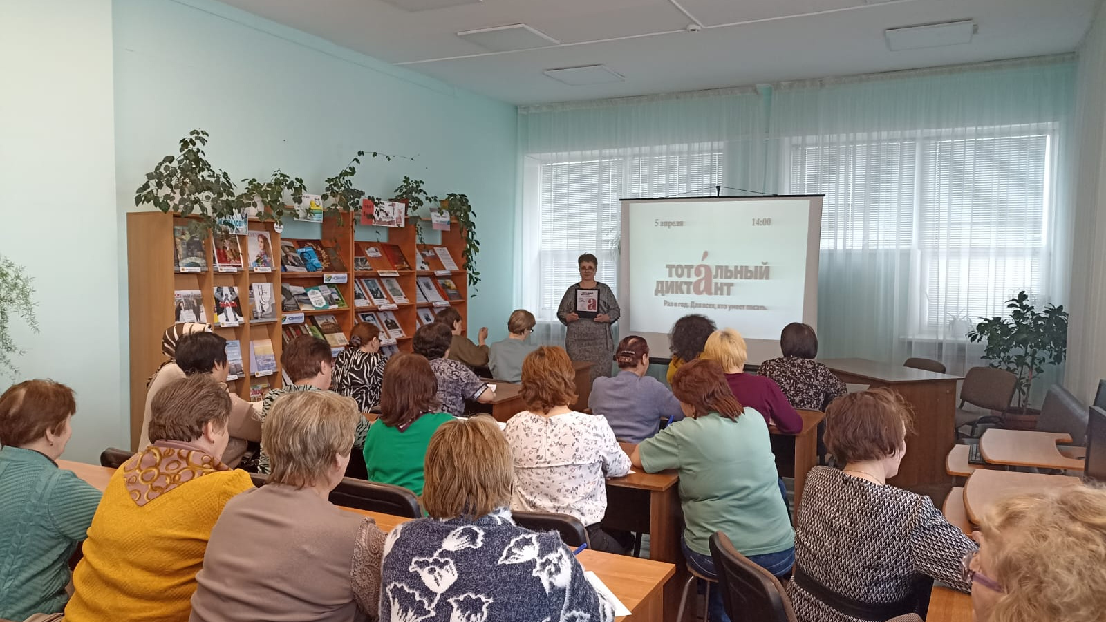На площадке центральной библиотеки проведена ежегодная Всероссийская акция "Тотальный диктант". Автор текста писательница Марина Москвина, " В поисках чудесного", часть 3, "Дорога лебедей".