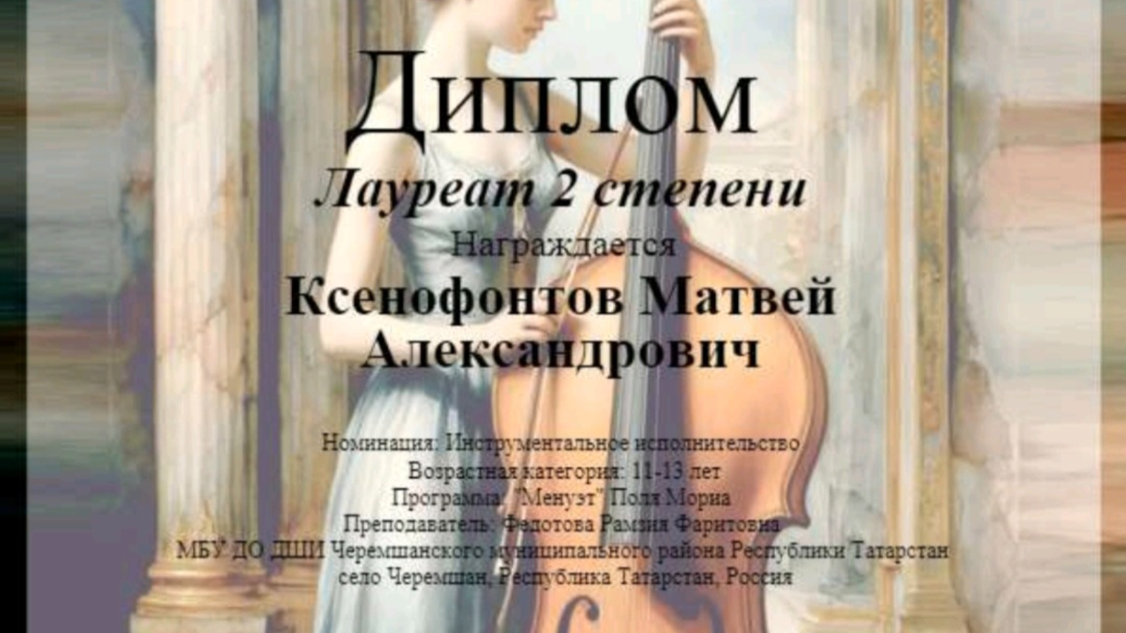 Учащийся отделения эстрадного искусства Детской школы искусств Ксенофонтов Матвей стал Лауреатом 2 степени на XXIV Международном конкурсе талантов для детей и взрослых «Удивительный мир творчества». Преподаватель Федотова Р. Ф.