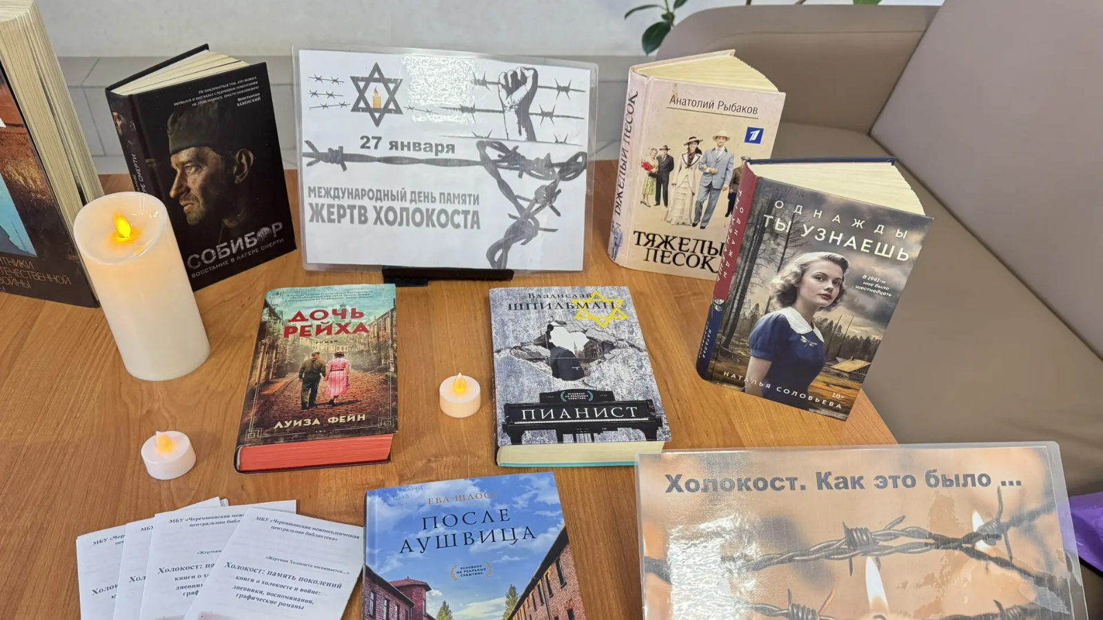 В рамках Недели Памяти жертв Холокоста сотрудники центральной библиотеки провели час памяти «Холокост — преступление и наказание» Ежегодно 27 января во всём мире отмечается Международный день памяти жертв Холокоста. Это одна из самых страшных трагедий двадцатого века. Участникам мероприятия библиотекари рассказали об истории возникновения концлагерей и лагерей смерти, познакомили с книгами, раскрывающими тему Холокоста.