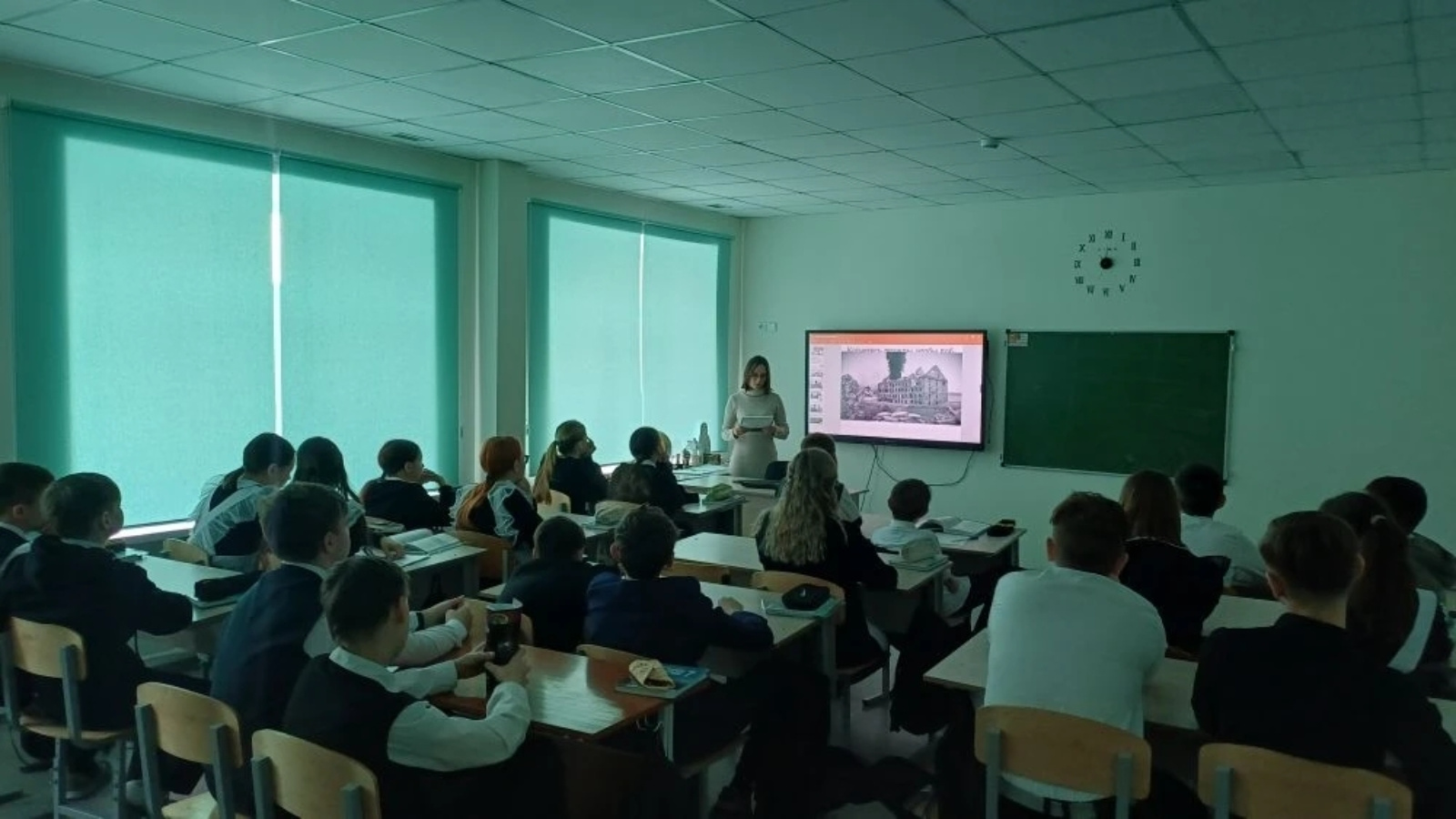 Школьники не только увидели уникальную хронику документальных событий и презентацию, но и сами стали участниками диалога, отвечая на вопросы о стойкости и подвиге, а также проверили свои знания в интерактивной викторине.