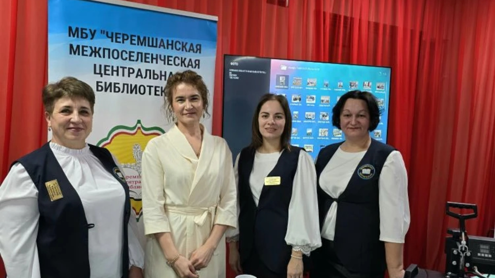 Творческая площадка "Библиотека - территория творчества и развития" на отчетной сессии главы Черемшанского муниципального района Айбатова Р.Т. Сотрудники центральной библиотеки представили современное оборудование, приобретенное на средства грантовой поддержки и сувенирную продукцию с символикой Черемшанского района.