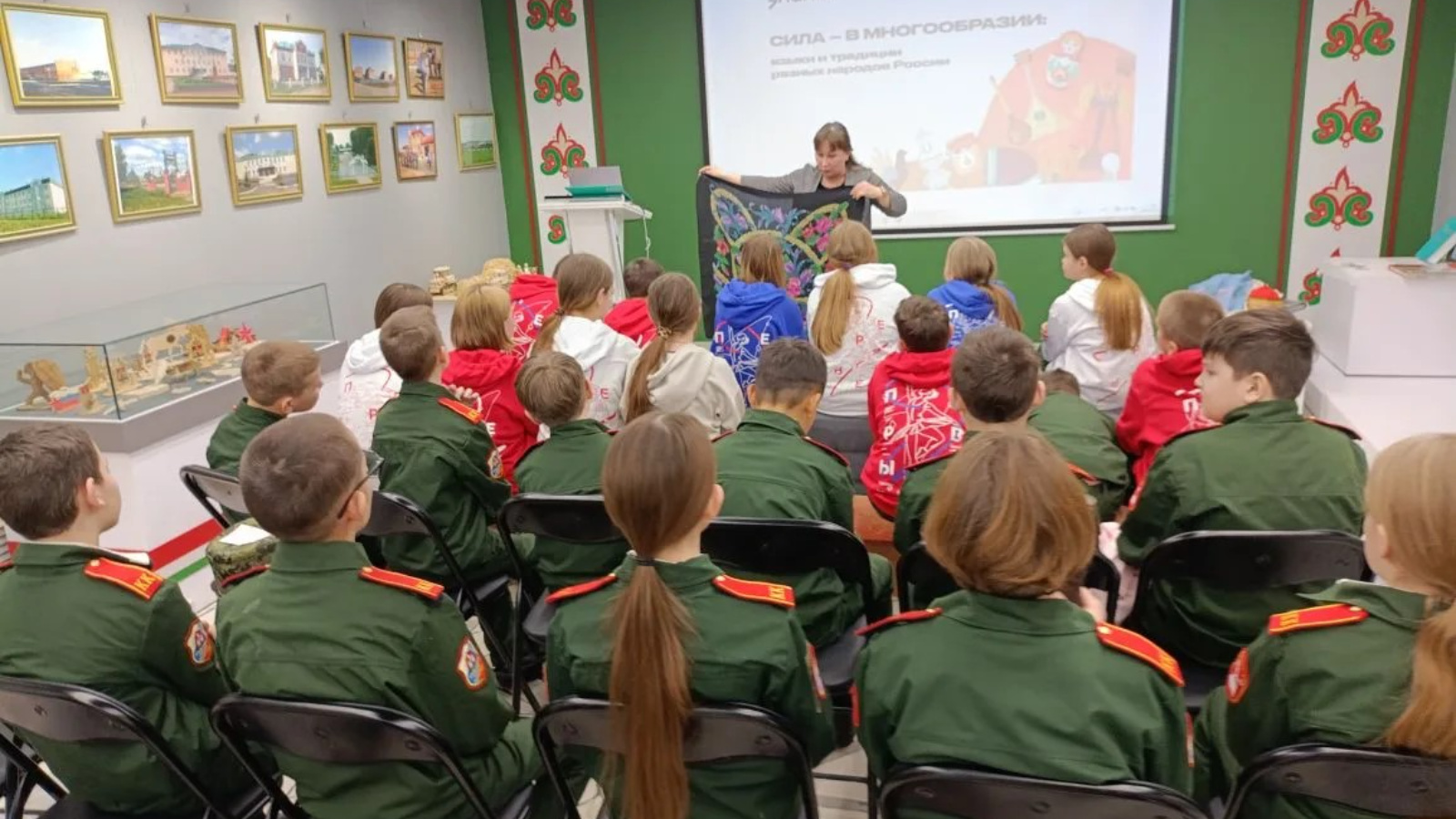 В рамках Года единства народов России в МБУ «Историко-краеведческий музей» состоялось мероприятие «Сила – в многообразии: язык и традиции разных народов России». Вместе с участниками «Движение Первых» и учащимися 5-6 класса ГБОУ «Черемшанская кадетская школа-интернат им. Героя Советского Союза И.Н. Конева» поговорили о том, что мы живем в стране, где каждый регион обладает своими уникальными особенностями — от природных условий до культуры и обычаев. Кадеты узнали, что предметы могут называться по-разному в зависимости от того, где ты живешь. Особое место в беседе заняли женские головные уборы. Это не просто элементы одежды, а настоящие хранители истории, отражающие мировоззрение, обычаи и даже положение женщины в обществе. От скромных платков до богато украшенных кокошников – каждый узор, каждая деталь рассказывали свою историю. Квест, подготовленный сотрудниками музея, стал настоящим интеллектуальным приключением. Разгадывая загадки, связанные с народными промыслами и традициями, кадеты погрузились в атмосферу прошлого. Им предстояло найти в экспозициях музея элементы национальной одежды и обуви, соответствующие описаниям. В завершении мероприятия, несмотря на все языковые и культурные различия, участники пришли к единому мнению: русский язык является мощным объединяющим фактором. Он позволяет народам России находить общий язык, делиться знаниями и опытом, строить крепкие дружеские отношения. Это мероприятие стало не просто уроком истории и культуры, но и важным шагом в формировании гражданской идентичности юных россиян, что является ключевым моментом национального проекта «Молодежь и дети». Мероприятие показало, что истинная сила России — в её многообразии, в уважении к каждому народу, в способности жить в мире и согласии, сохраняя при этом свои уникальные традиции и ценности.