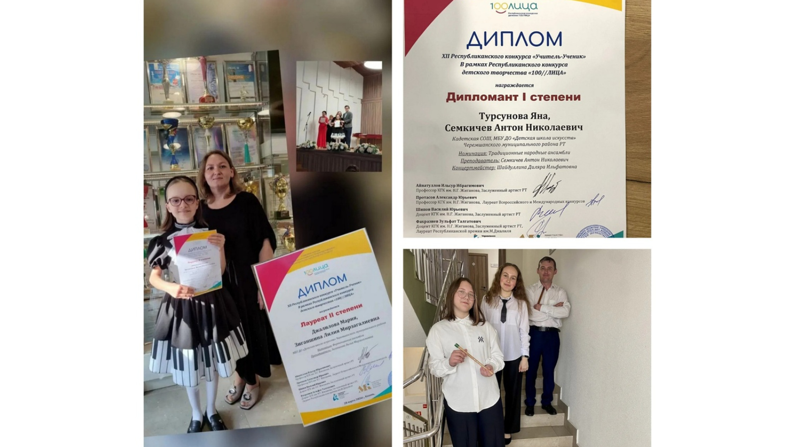 Преподаватель ДШИ — Семкичев Антон Николаевич, концертмейстер — Шайдуллина Диляра Илфатовна и ученица 2 класса Турсунова Яна в номинации «Традиционные народные инструменты» стали Дипломантами I степени