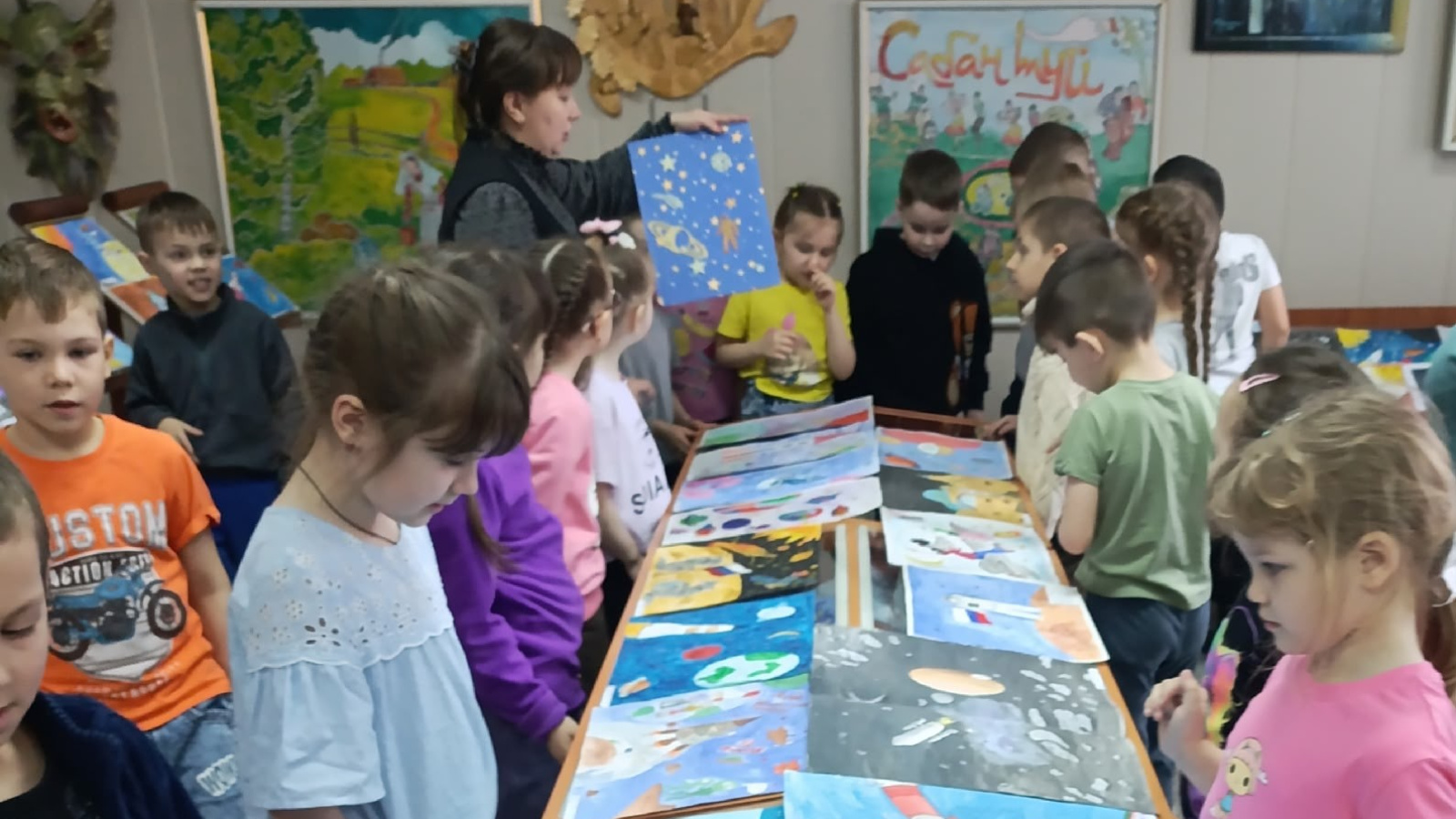МБУ «Историко-краеведческий музей» посетили юные жители села, воспитанники детского сада «Ромашка». Для них было организовано интересное мероприятие, посвященное Дню космонавтики. Ребята вместе со специалистами музея отправились в настоящее космическое путешествие: сначала узнали о том, кто такой Ю.А. Гагарин, затем отгадывали загадки и сделали интересную зарядку, чтобы стать сильными, как космонавты. А далее специалисты музея для ребят подготовили настоящий сюрприз! Они организовали выставку детских рисунков «Вперед к звездам». Эти работы – не просто рисунки, а целый мир, полный детских мечтаний, открытий и стремлений. Каждый холст – это взгляд юного исследователя на бесконечные глубины космоса, на мерцающие звезды, далекие галактики и загадочные планеты. В этих ярких красках и смелых линиях отражается безграничная детская любознательность и вера в невозможное. Здесь есть и реалистичные изображения космических кораблей, исследующих неизведанные миры, и фантастические картины, где существа с других планет строят дружеские отношения с землянами. Каждая работа – это маленький шедевр, наполненный светом, надеждой и безграничной верой в будущее. Работы выполнены в разнообразных техниках: акварель, гуашь, есть и аппликация. Ребята с интересом разглядывали эти рисунки. Подобные мероприятия, играют неоценимую роль в формировании мировоззрения подрастающего поколения. Они не только знакомят детей с важными историческими датами и значимыми личностями, но и развивают их творческие способности, воображение и познавательный интерес. Возможность прикоснуться к миру космоса через игру, загадки и творчество делает процесс обучения увлекательным и запоминающимся.