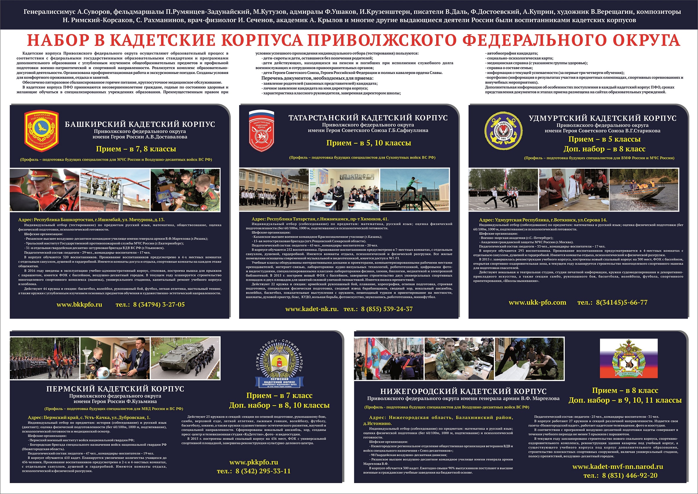 Информация о поступлении в кадетские корпуса ПФО