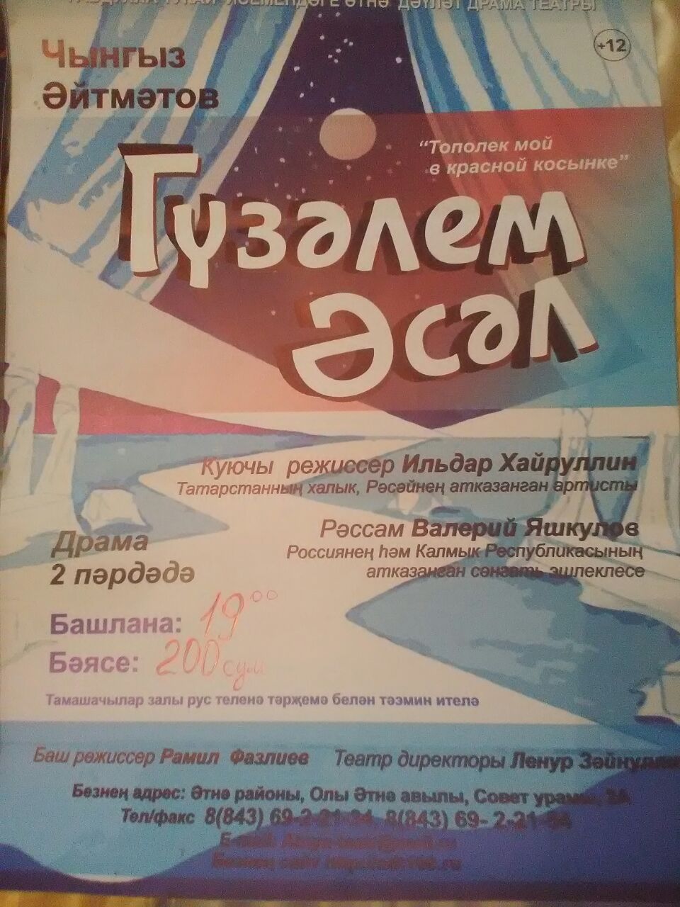 Чирмешәнлеләрне Г.Тукай исемендәге Әтнә дәүләт драма театрының Чыңгыз Әйтмәтов әсәре буенча куелган Гүзәлем Әсәл спектакленә чакырабыз.