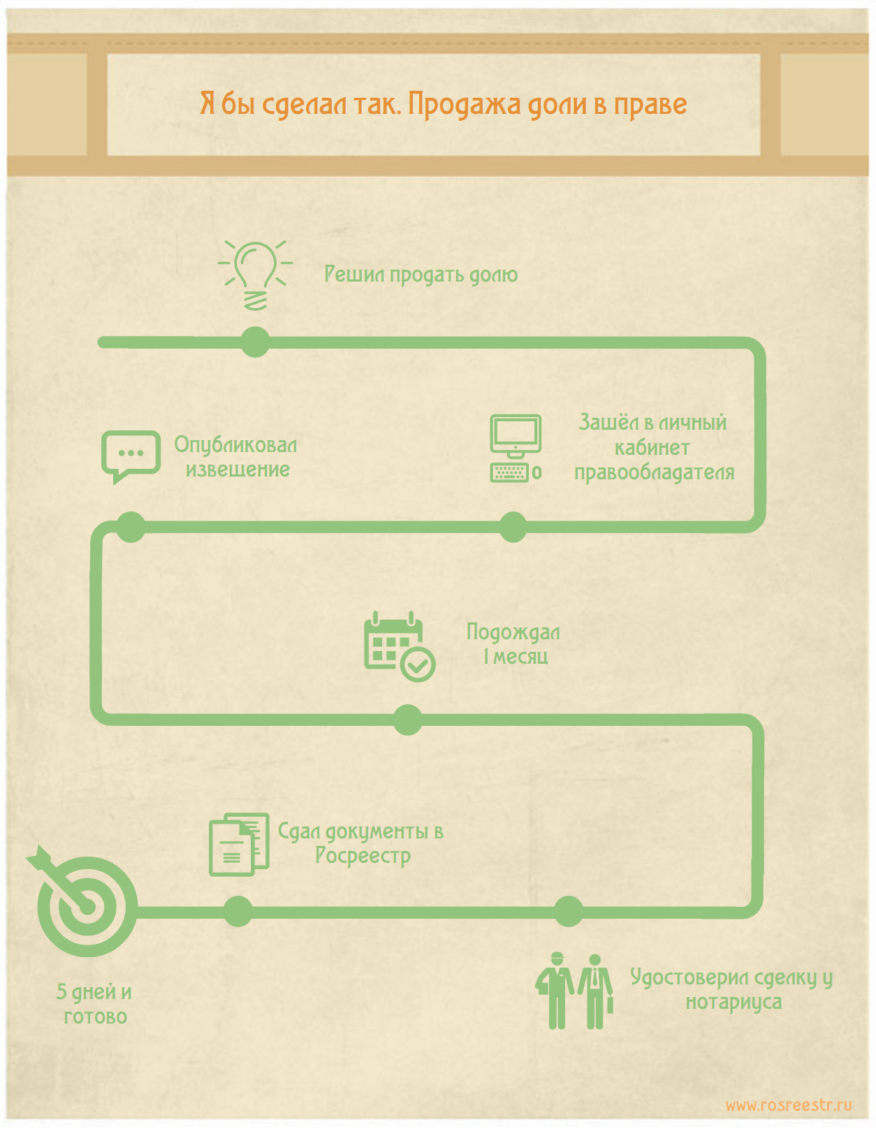 За публикацию на сайте Росреестра извещения плата не взимается. Разместить такое извещение собственник может через «личный кабинет», вход в который осуществляется с главной страницы сайта Росреестра. Новая функция в «личном кабинете» Росреестра позволит собственникам недвижимости экономить время и средства в случае продажи ими доли в праве общей собственности.