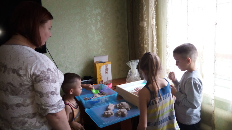 Гаиләгә һәм балаларга социаль ярдәм күрсәтү бүлекчәсенең социаль педагогы Шипилова Е.Н. һәм социаль эш буенча белгеч Микушова Г.И. Әккәрәй авылында гаиләләрдә булдылар. Алар анда балалар белән ком терапиясе уздырдылар. Төрле техникалар кулланып аны кызыклы итәргә һәм балалардагы төрле проблемаларны ачыкларга була.