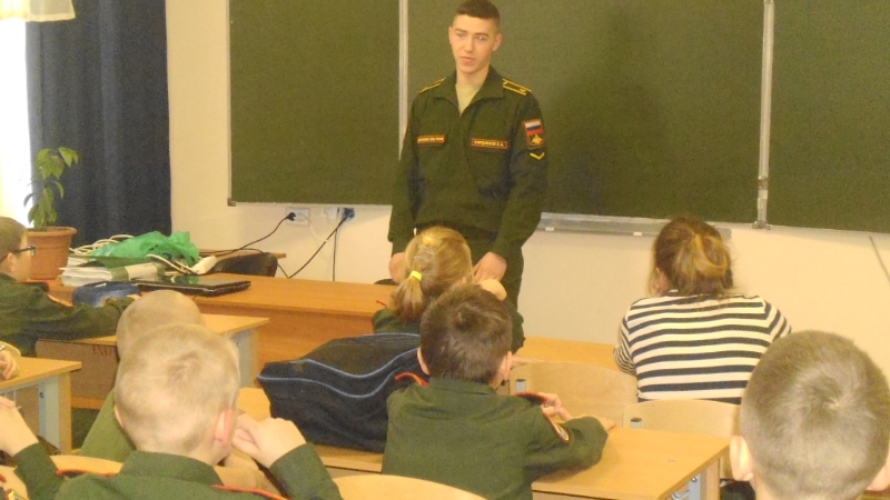 11 гыйнварда Чирмешән кадетлар мәктәп-интернаты укучылары 2018 елда мәктәпләрен тәмамлаган, бүген инде Казан югары танк училищесы курсанты булган Егор Кирдянов белән очраштылар. Егор аларга уку йорты турында сөйләде, укучыларның сорауларына җавап бирде.