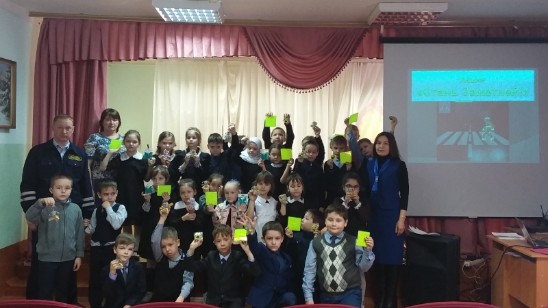 "Юл хәрәкәте куркынычсызлыгы" территориаль идарәсенең әйдәүче белгече Л.Сафина һәм В. Смирнов беренче Чирмешән мәктәбенең 1 класс укучылары белән "Күренә торган бул!" акиясе уздырдылар.
