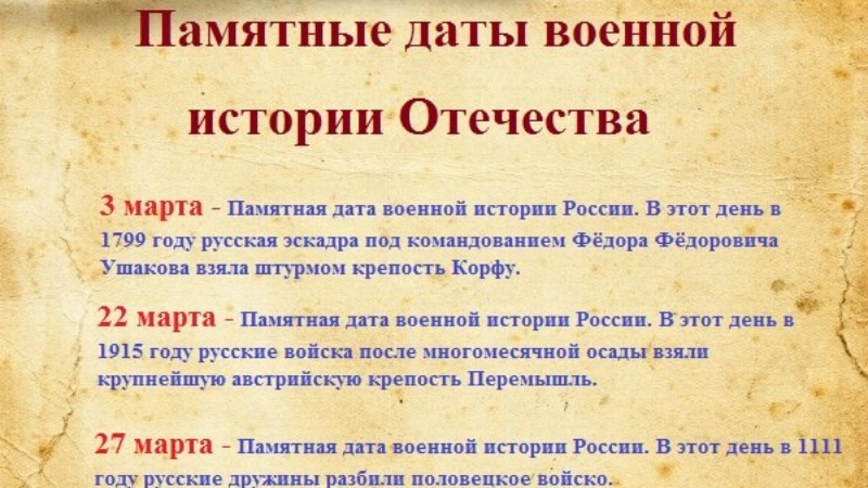 Реализация проекта «Памятные даты военной истории Отечества» календарь на МАРТ.