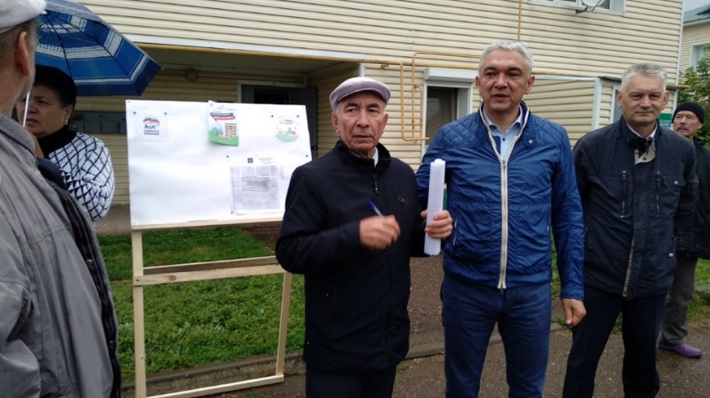 "Безнең ишегалды" проекты кысаларында Дәүләт Советы депутаты Рәис Сөләйманов Совет урамы 45, 45А йортларында яшәүчеләр белән очрашты.