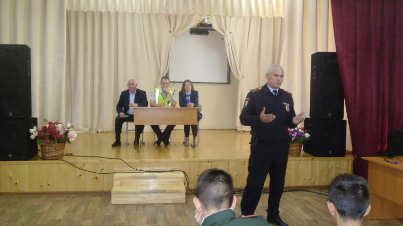 Участок уполномоченные Марат Кәбиров, ЮХИДИ инспекторы Сергей Барабашкин, юл хәрәкәте куркынычсызлыгы буенча район бүлекчәсе начальнигы Лилия Сафина 12 сентябрьдә кадетлар мәктәп-интернатында укучылар белән балигъ булмаганнар арасында хокук бозуларны кисәтү буенча прфилактик әңгәмә уздырдылар.