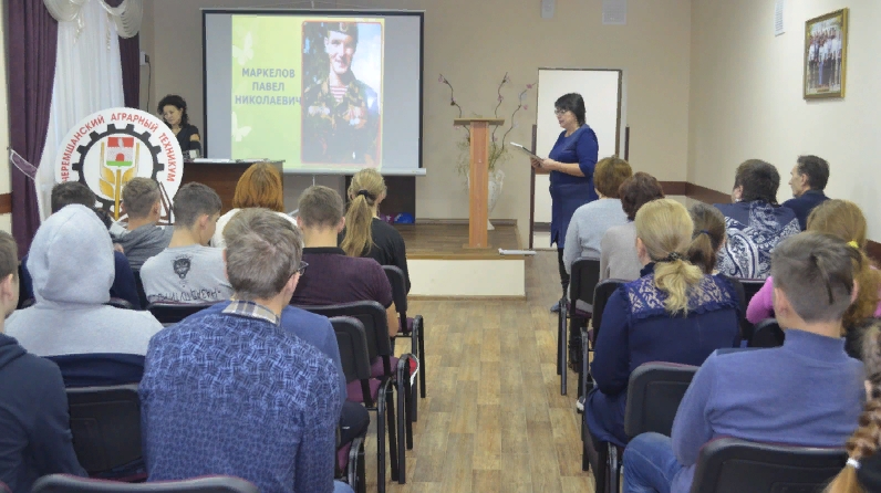 Ватан Геройлары көнендә үзәк китапханә хезмәткәрләре Чирмешән аграр техникумында тыныч вакытта геройлык күрсәткән якташларыбыз турында «Россия җире –геройлар Ватаны» дип исемләнгән батырлык сәгате үткәрделәр.
