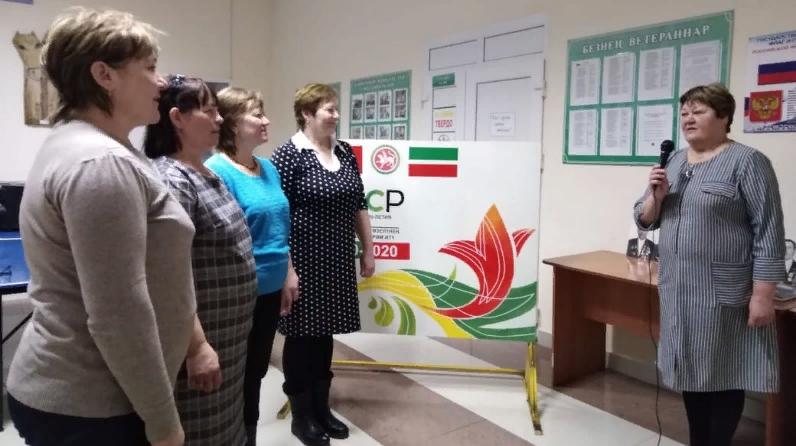 Биредә Бөек Ватан сугышында катнашкан авыл кешеләренең исемлекләре язылган, фотографияләр һәм стендлар, медальләрдән күргәзмә оештырылган иде. Сәнгать җитәкчесе Г. К. Хөсәенова сайлаган «Сугыш еллары музыкасы» фонограммасына җырлар башкардылар кунаклар.