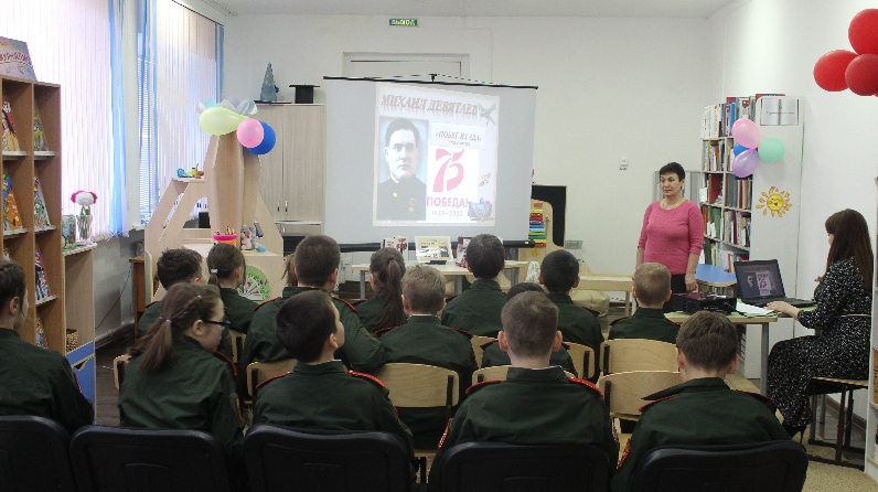 Бөек Җиңүнең 75 еллыгына һәм «Эрзяночка» проекты кысаларында үзәк балалар китапханәсендә Чирмешән кадетлар мәктәп-интернатының 5-6 сыйныф укучылары белән «Побег из ада» (Михаил Девятаев турында) һәм «Настоящий человек Алексей Маресьев» дигән батырлык дәресләре узды. Бу легендар очучыларның, Советлар Союзы геройларының исемнәре бөтен дөньяга билгеле. Балалар Бөек Ватан сугышы елларында Девятаев, немец әсирлегендә, бер төркем иптәшләр белән фашист самолетын алып, үлем утравыннан очып китүен белделәр. Алексей Маресьевның батырлыгы - күп кенә кешеләр өчен өмет һәм үрнәк, безгә көрәшергә һәм үз-үзләренә ышанычны югалтмаган кешенең нигә ирешә алуын искә төшерә. Фронтта ике аягын да югалтып, ул сынмый, ә чын кеше булып уза. Аның батырлыгы Борис Полевыйны «Чын кеше турында повесть» дигән атаклы китап чыгаруга рухландырды. Чара презентация белән үрелеп барды. «Мордва халкы геройлары» китап күргәзмәсендә М.Девятаев һәм Б. Полевойның китаплары тәкъдим ителде.