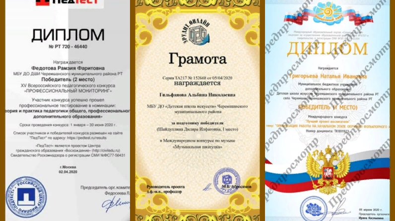 Балалар сәнгать мәктәбе укытучылары педагогик осталыкның төрле конкурсларында актив катнашалар. Федотова Рәмзия Фәрит кызы «Профессиональ мониторинг» Бөтенроссия педагогик конкурсында җиңүче булды, Григорьева Наталья Ивановна «Тәрбияченең иң яхшы проекты» Халыкара конкурсында җиңүчесе, ул «Фольклор сәнгатен укытуның башлангыч этабында эшне оештыру» проектын тәкъдим итте. Гыйльфанова Альбина Николаевна музыкаль конкурсларга призерлар әзерләгән өчен грамоталар белән бүләкләнде.