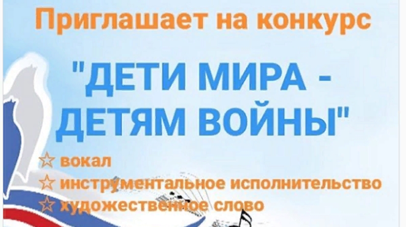 В предверии празднования 75 летия Великой Победы детская школа искусств приглашает на конкурс " ДЕТИ МИРА - ДЕТЯМ ВОЙНЫ"